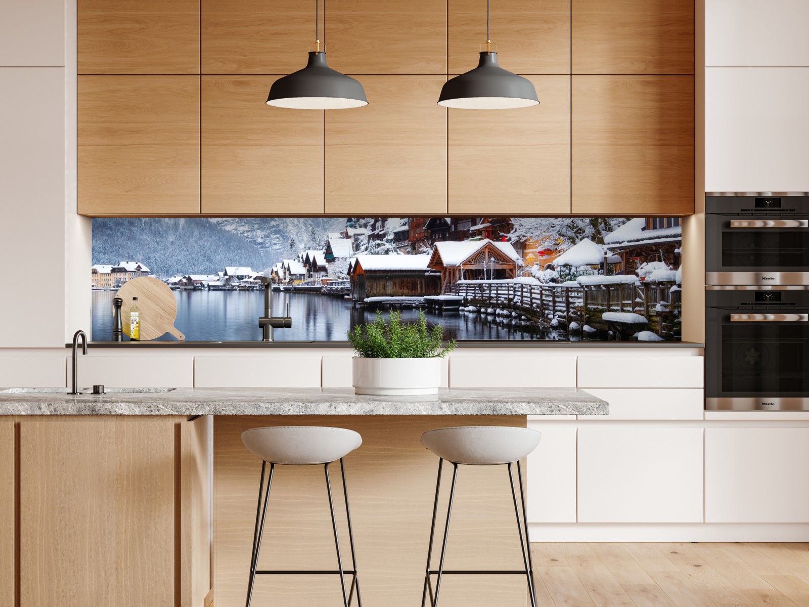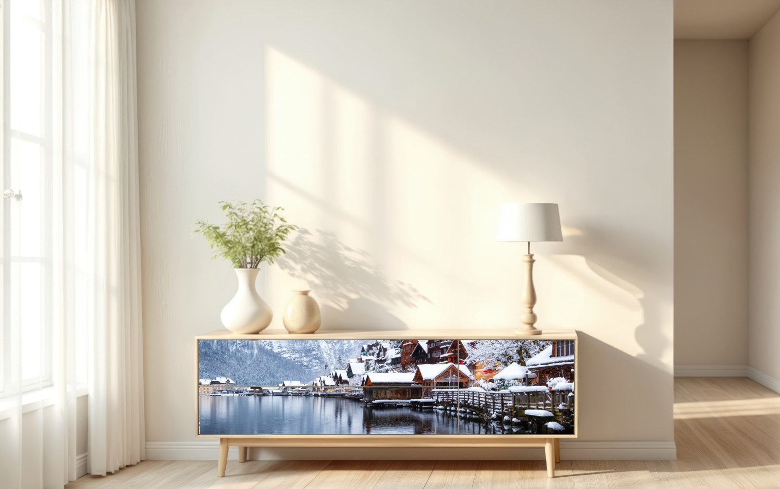 Repositionierbarer Aufkleber Verschneites Hallstatt am see