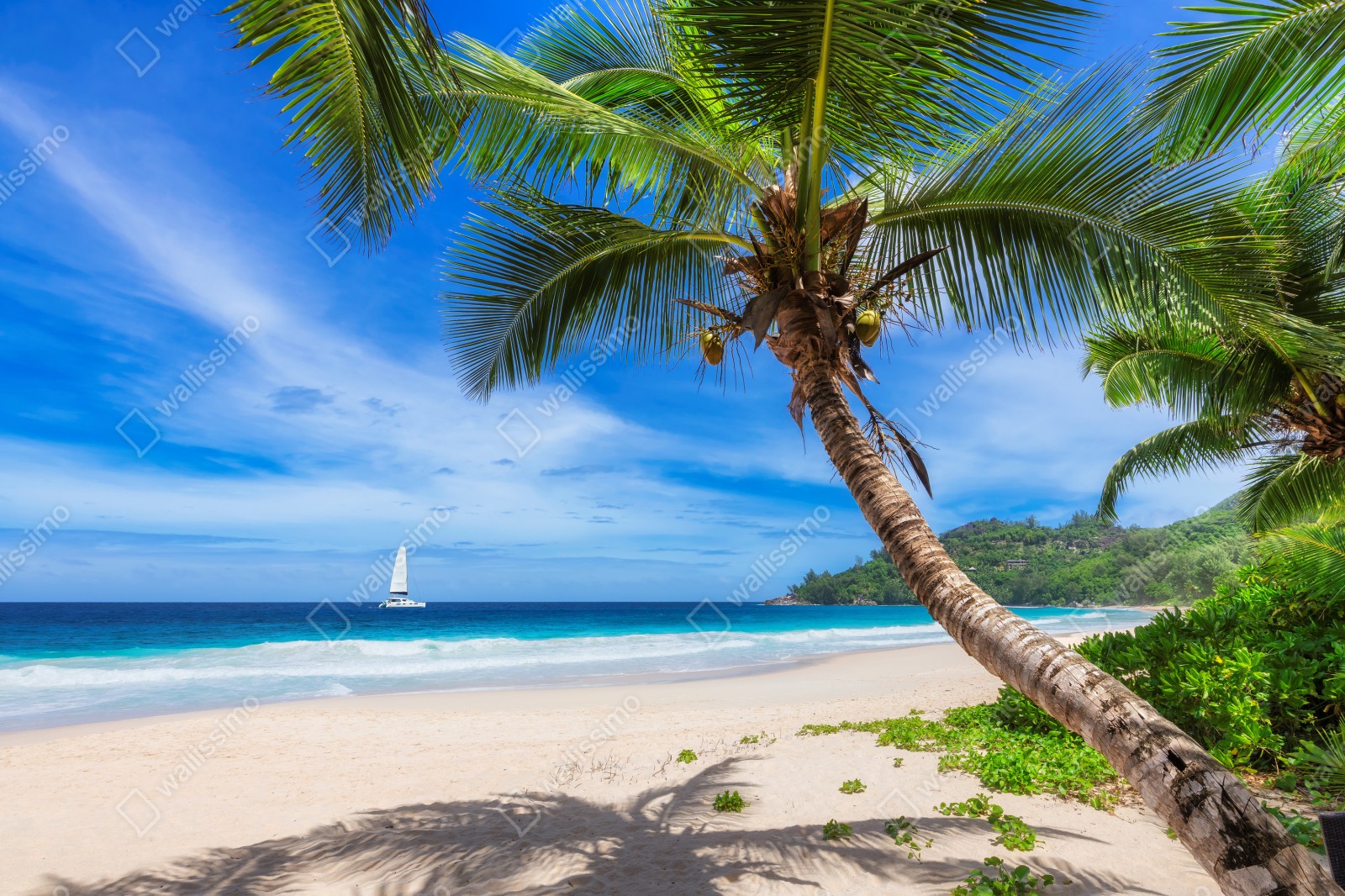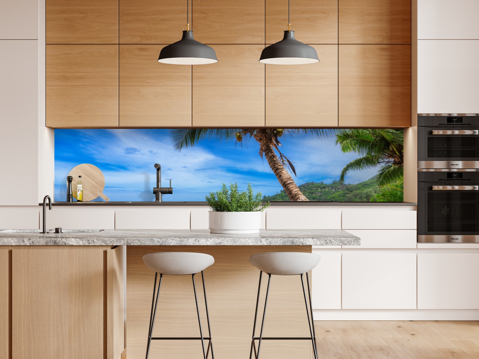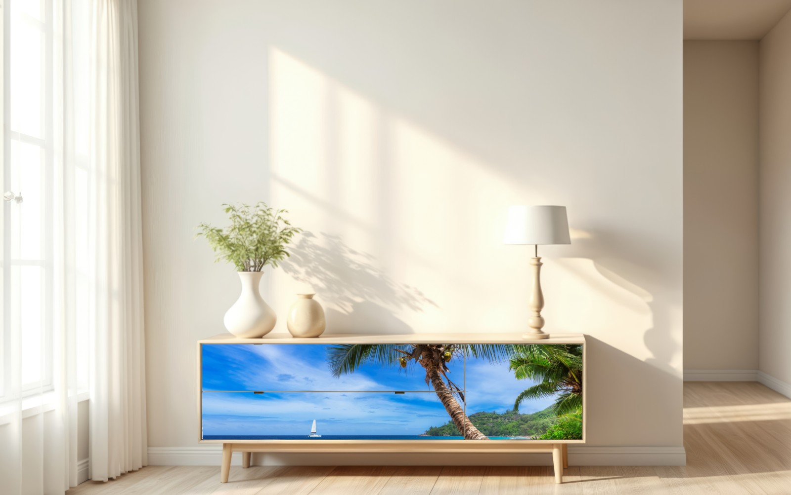 Repositionierbarer Aufkleber Tropischer strand mit palme