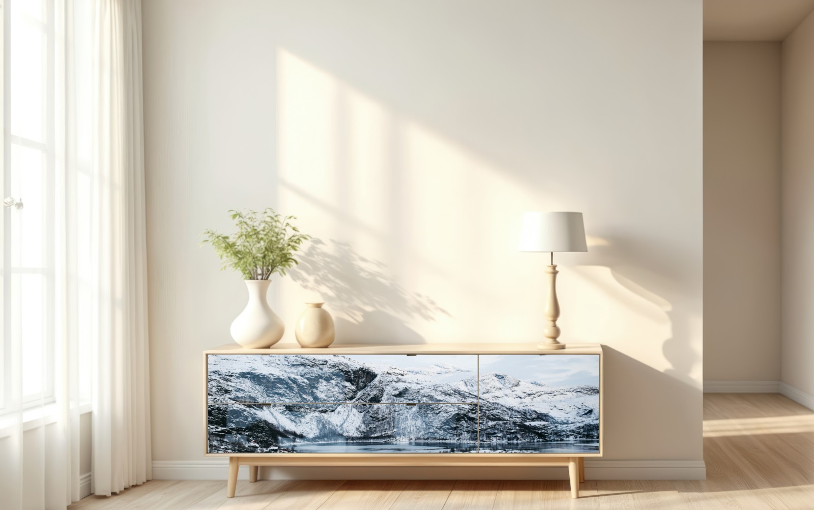 Repositionierbarer Aufkleber Ruhige winterliche berglandschaft über zugefrorenem see
