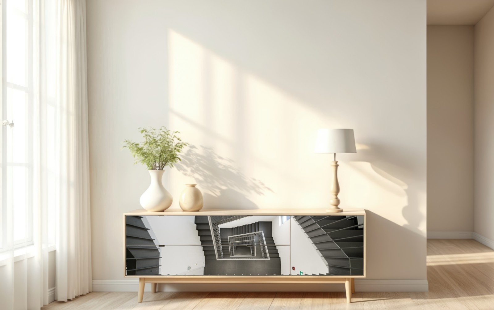 Repositionierbarer Aufkleber Geometrisches treppenhaus in perspektive