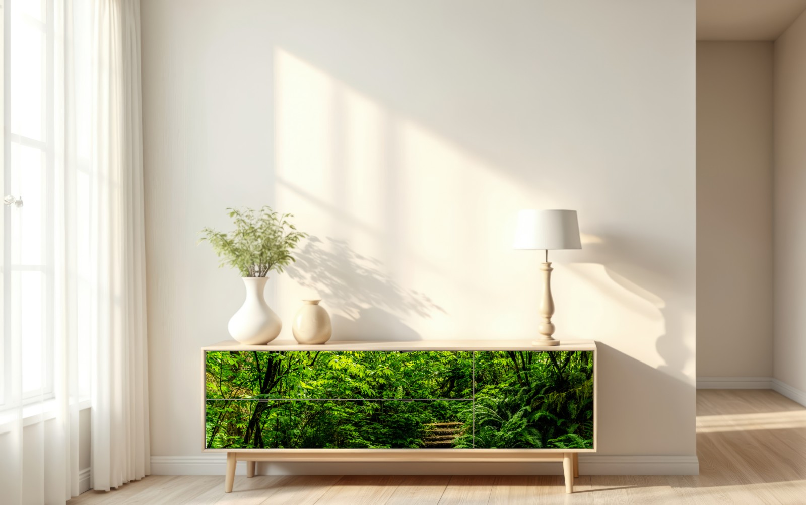 Repositionierbarer Aufkleber Üppiger waldpfad