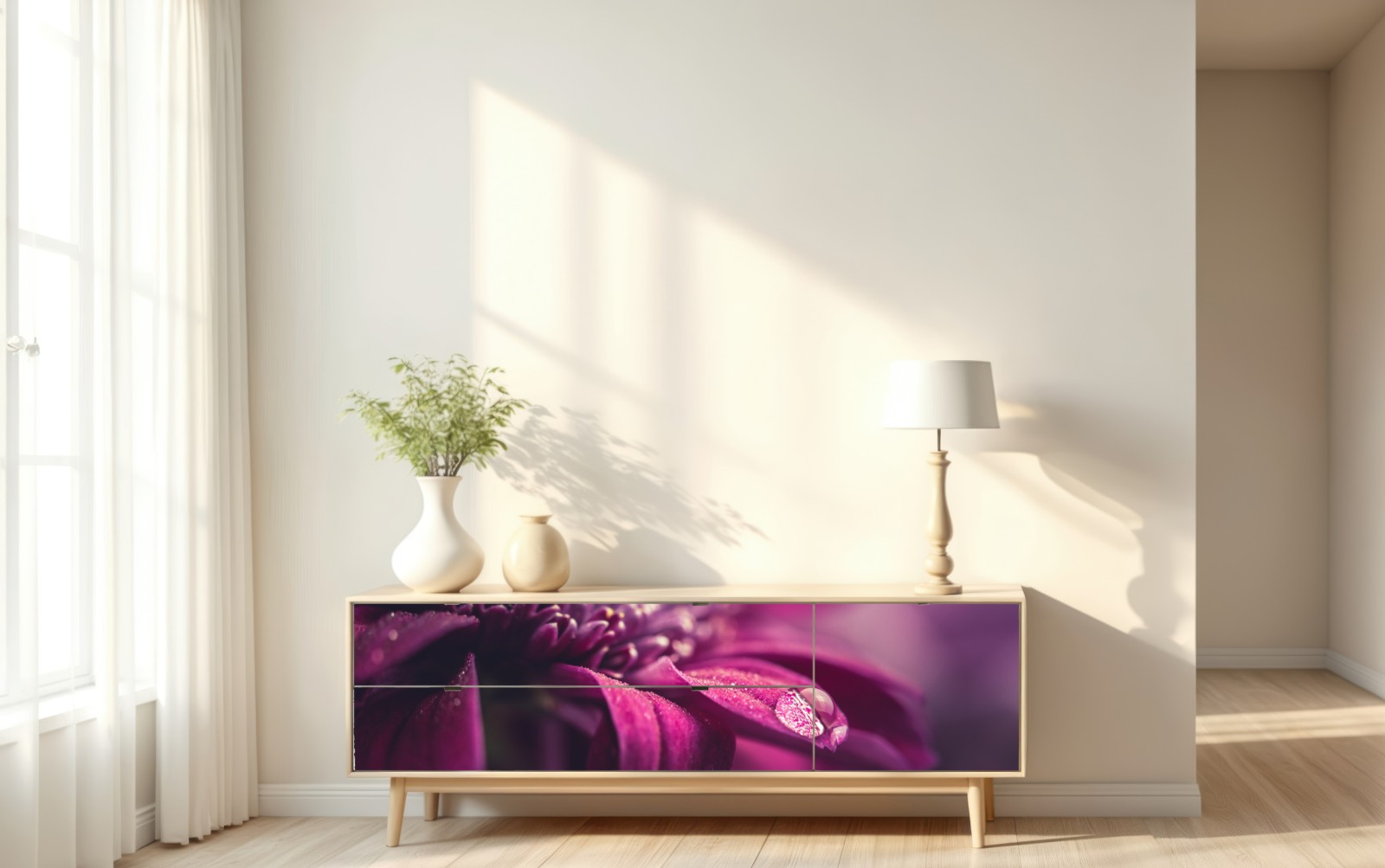Repositionierbarer Aufkleber Lila makroblüte mit tautropfen