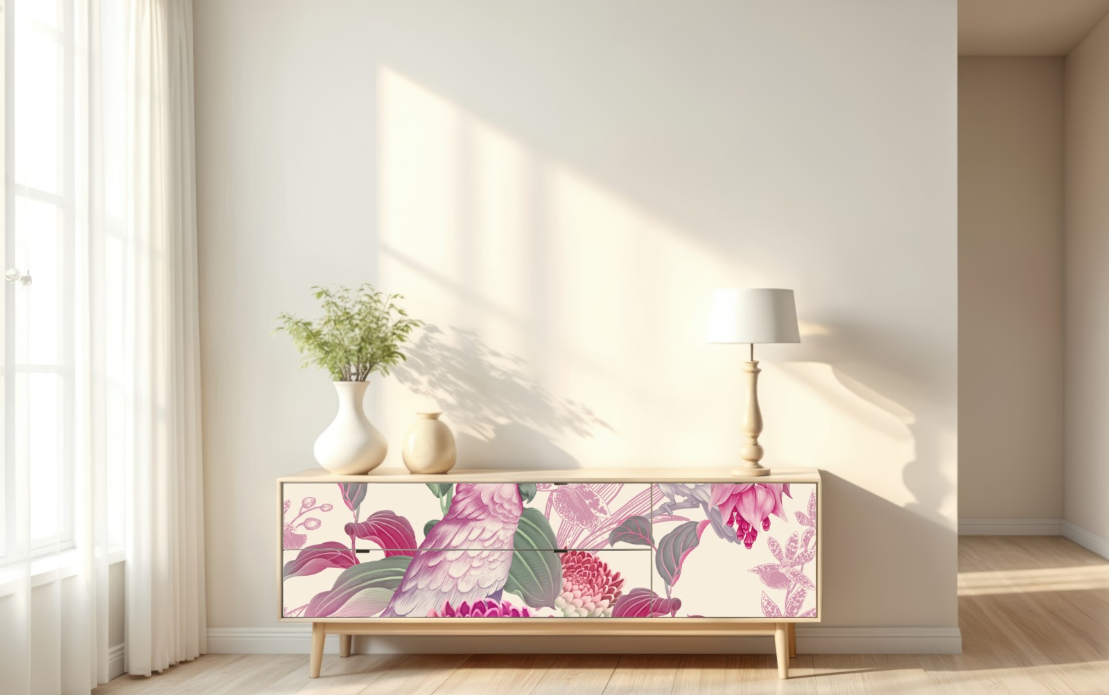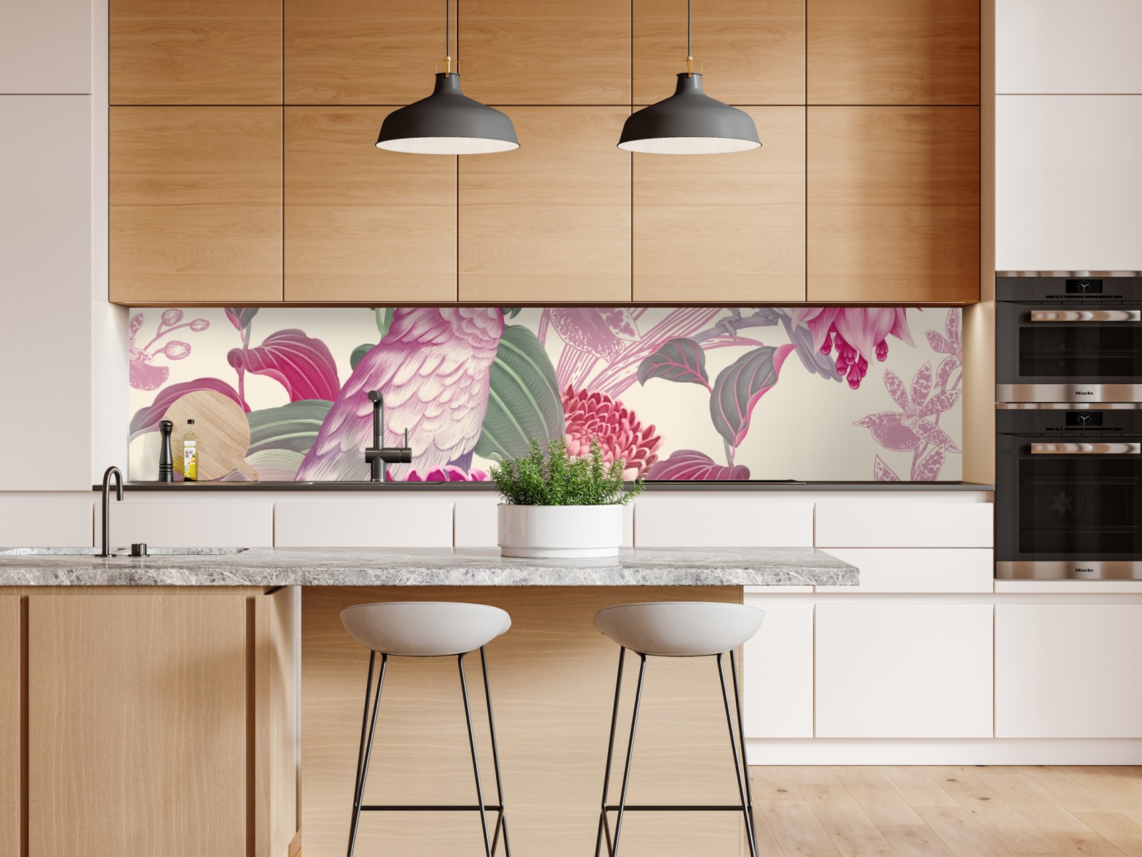 Repositionierbarer Aufkleber Rosa papagei und chrysantheme - botanisches motiv