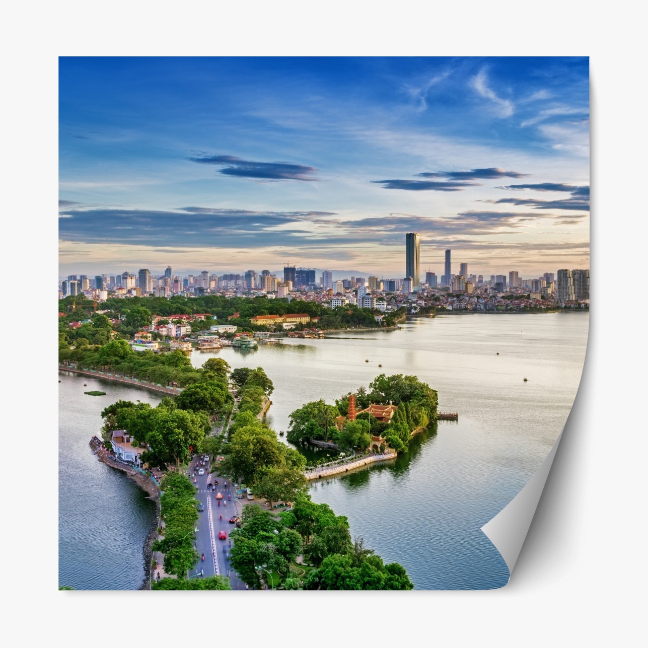 Repositionierbarer Aufkleber Ruhige städtische panorama am see