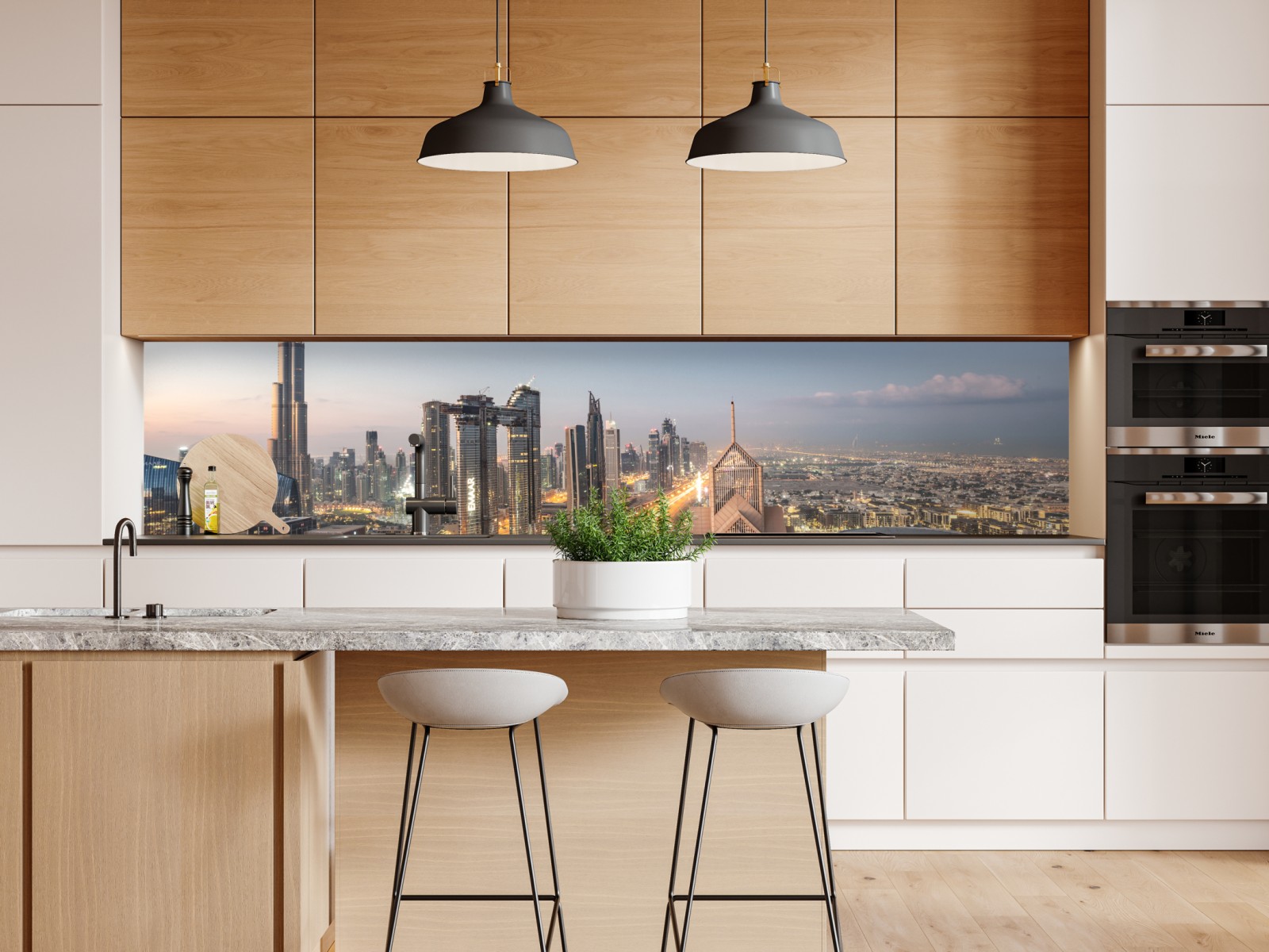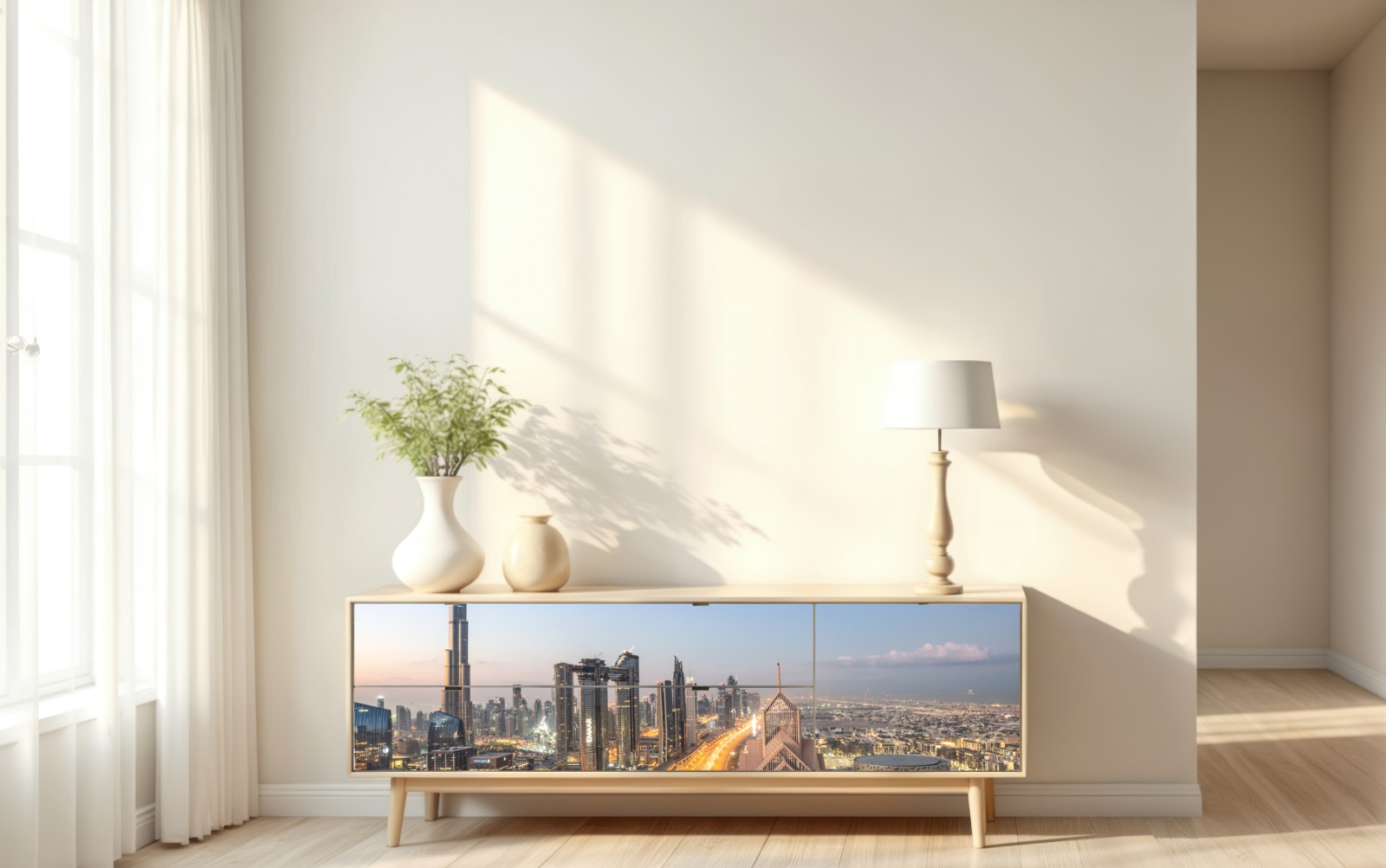 Repositionierbarer Aufkleber Skyline von Dubai bei dämmerung