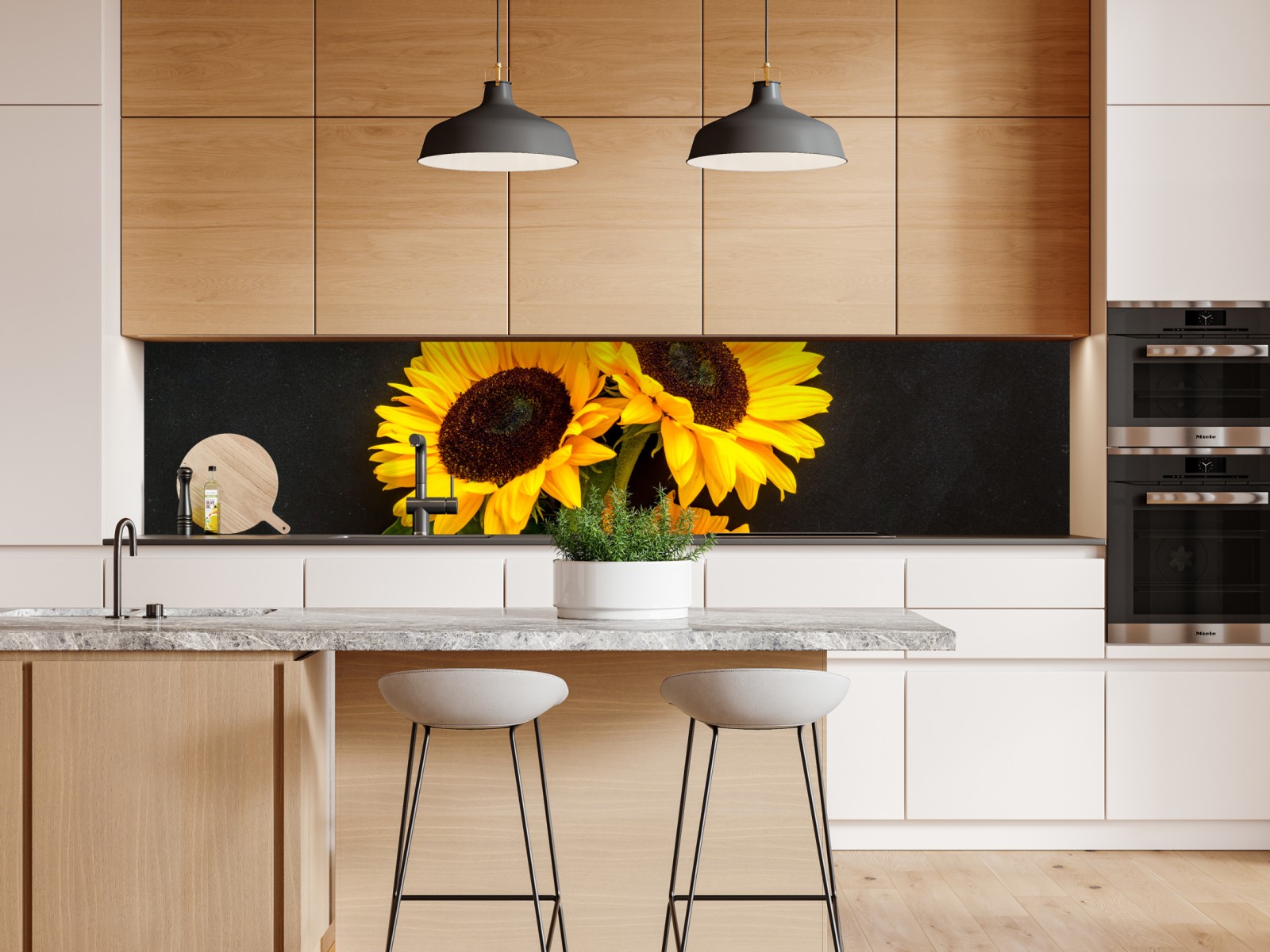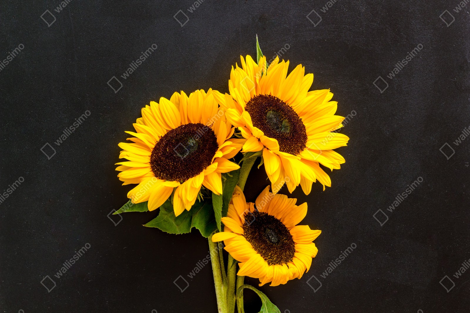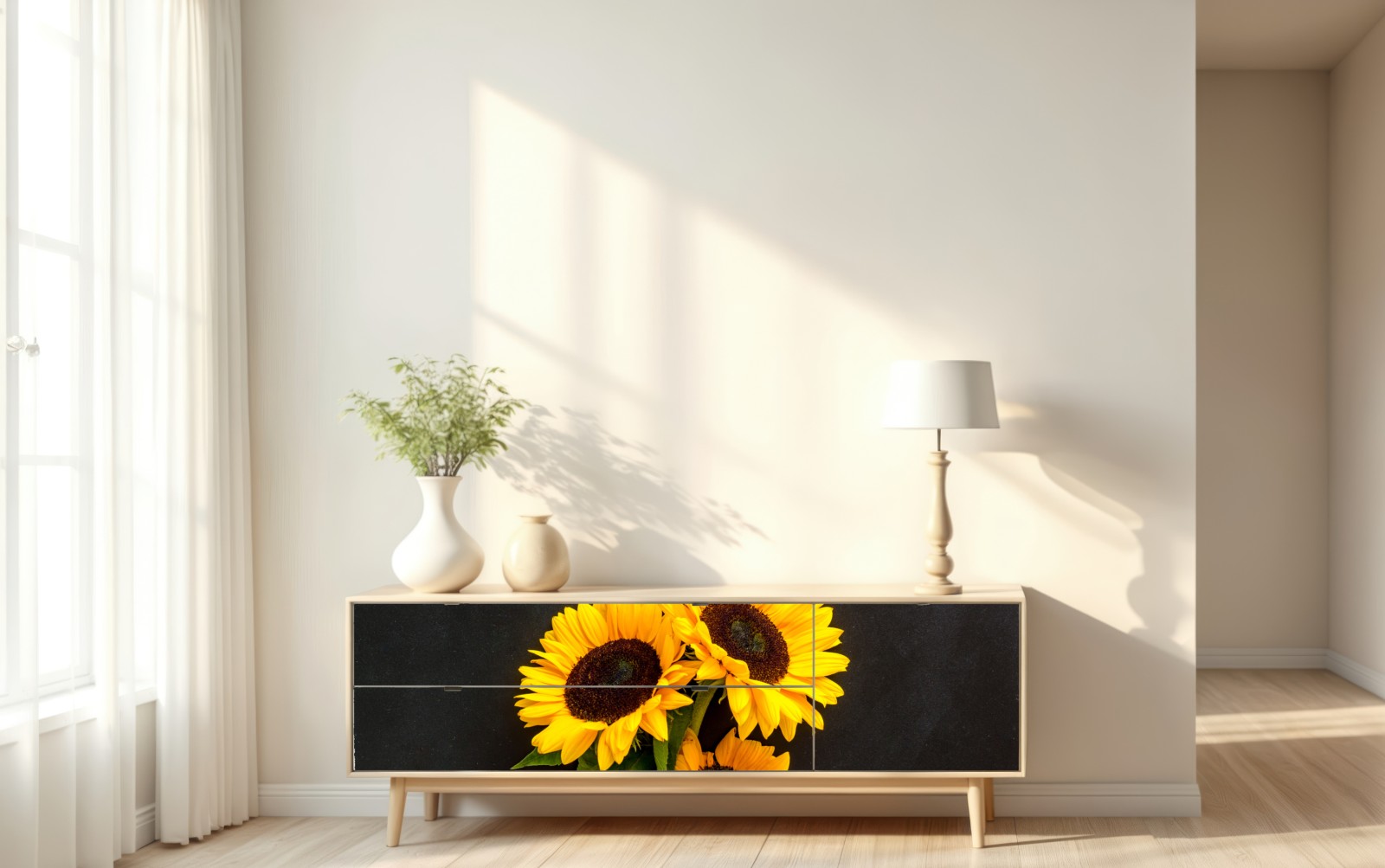 Repositionierbarer Aufkleber Leuchtende sonnenblumen auf schwarzem hintergrund