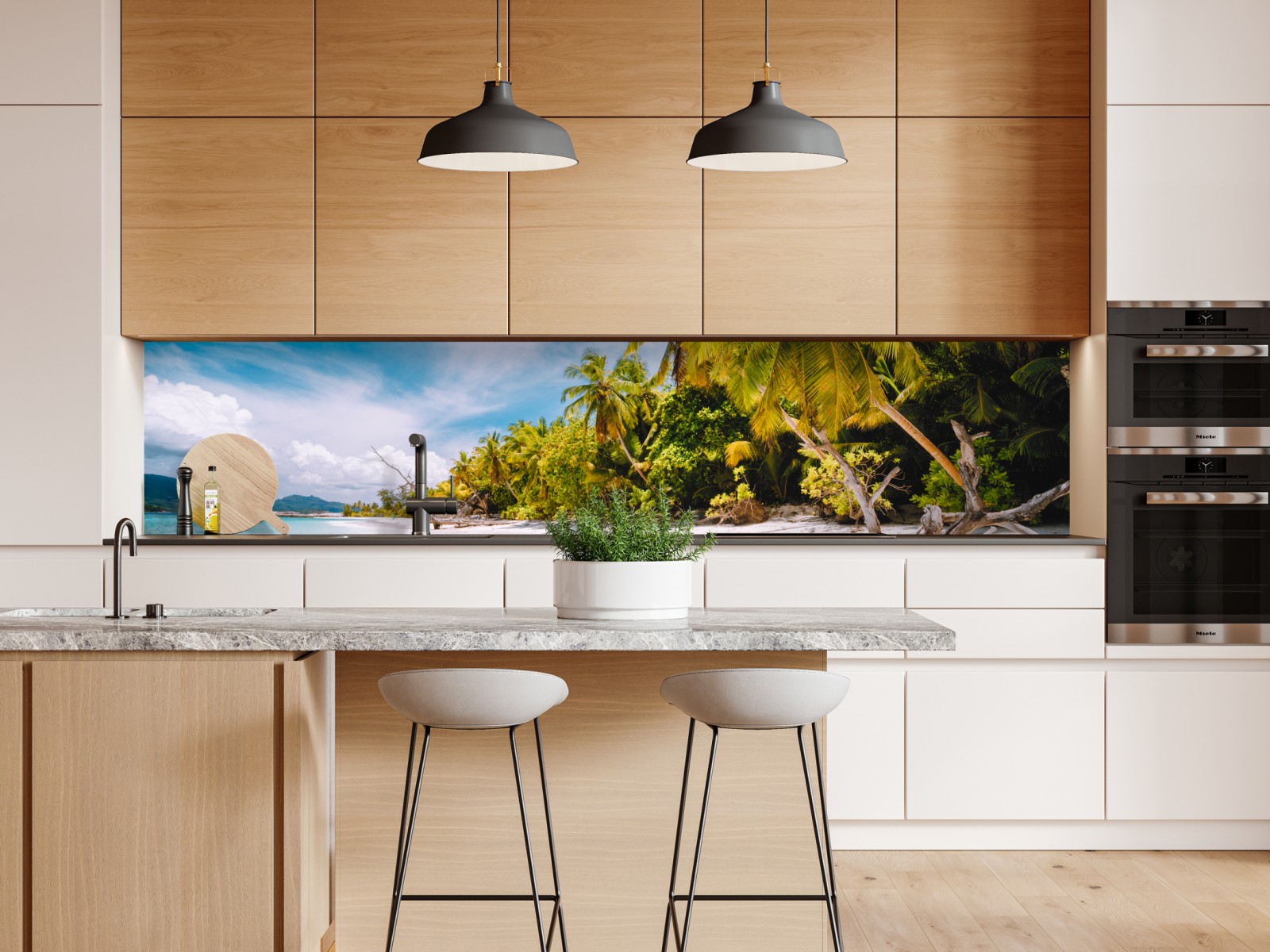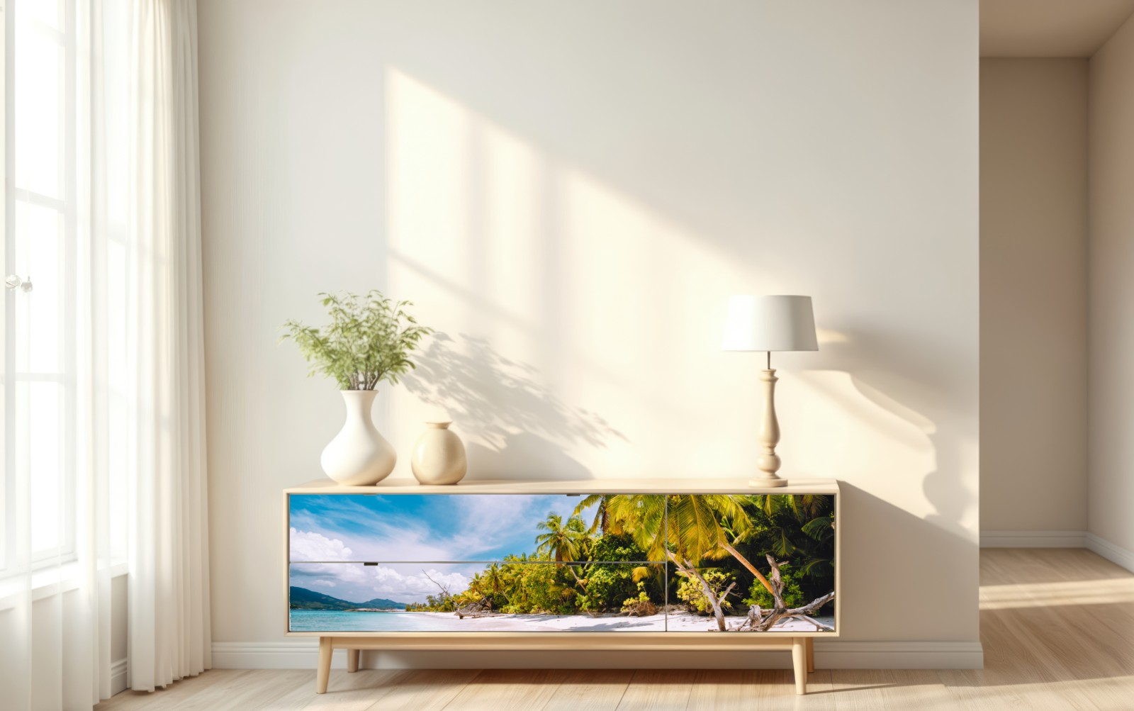 Repositionierbarer Aufkleber Tropischer strandidyll mit palmen