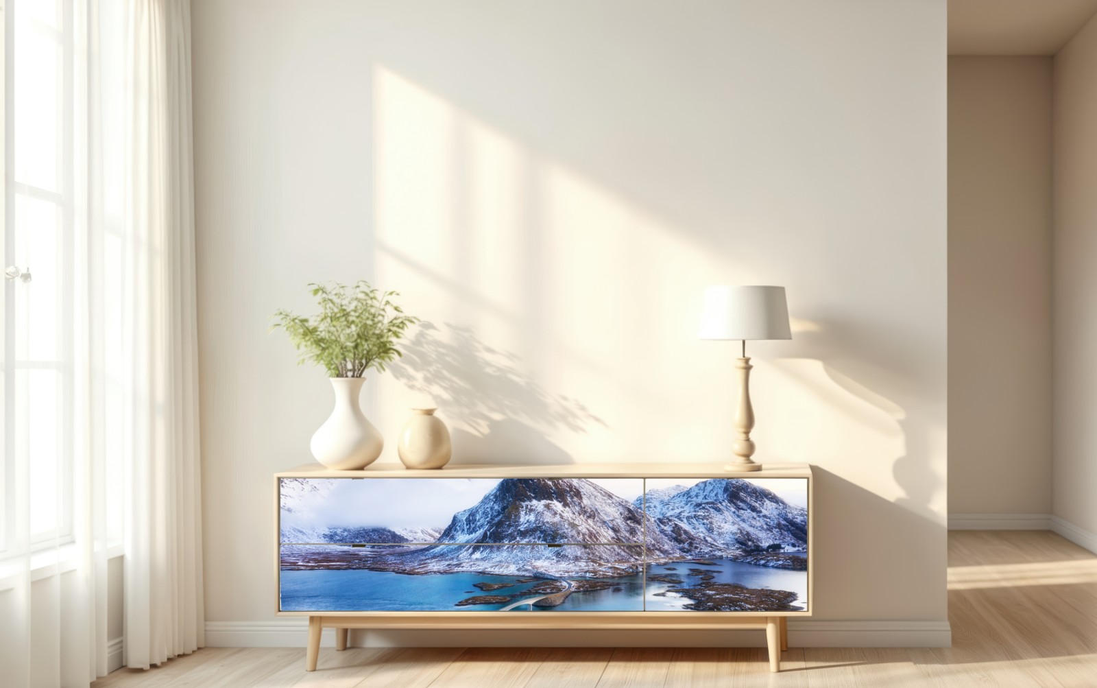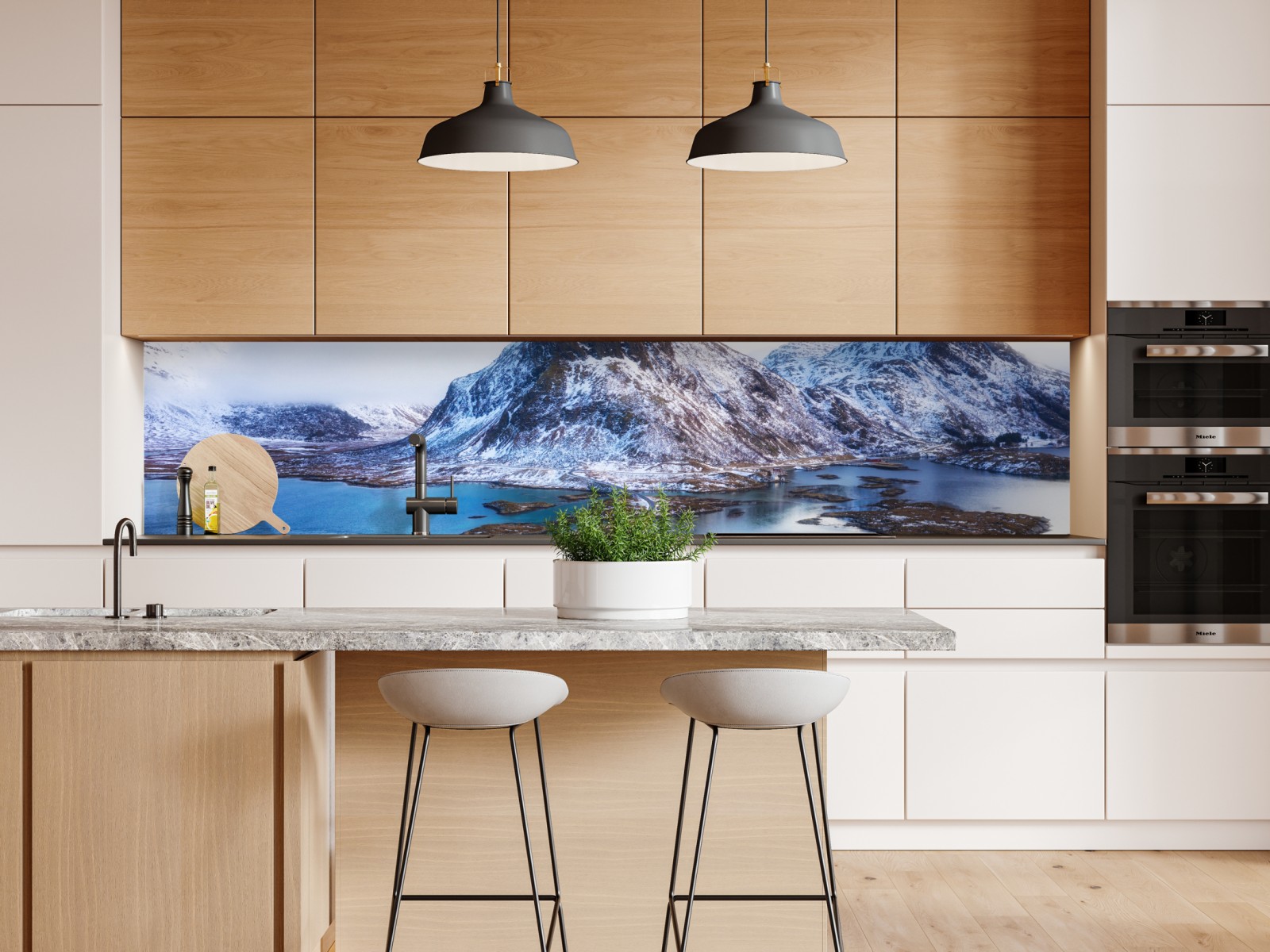 Repositionierbarer Aufkleber Lofoten brücke und berg aus der luft