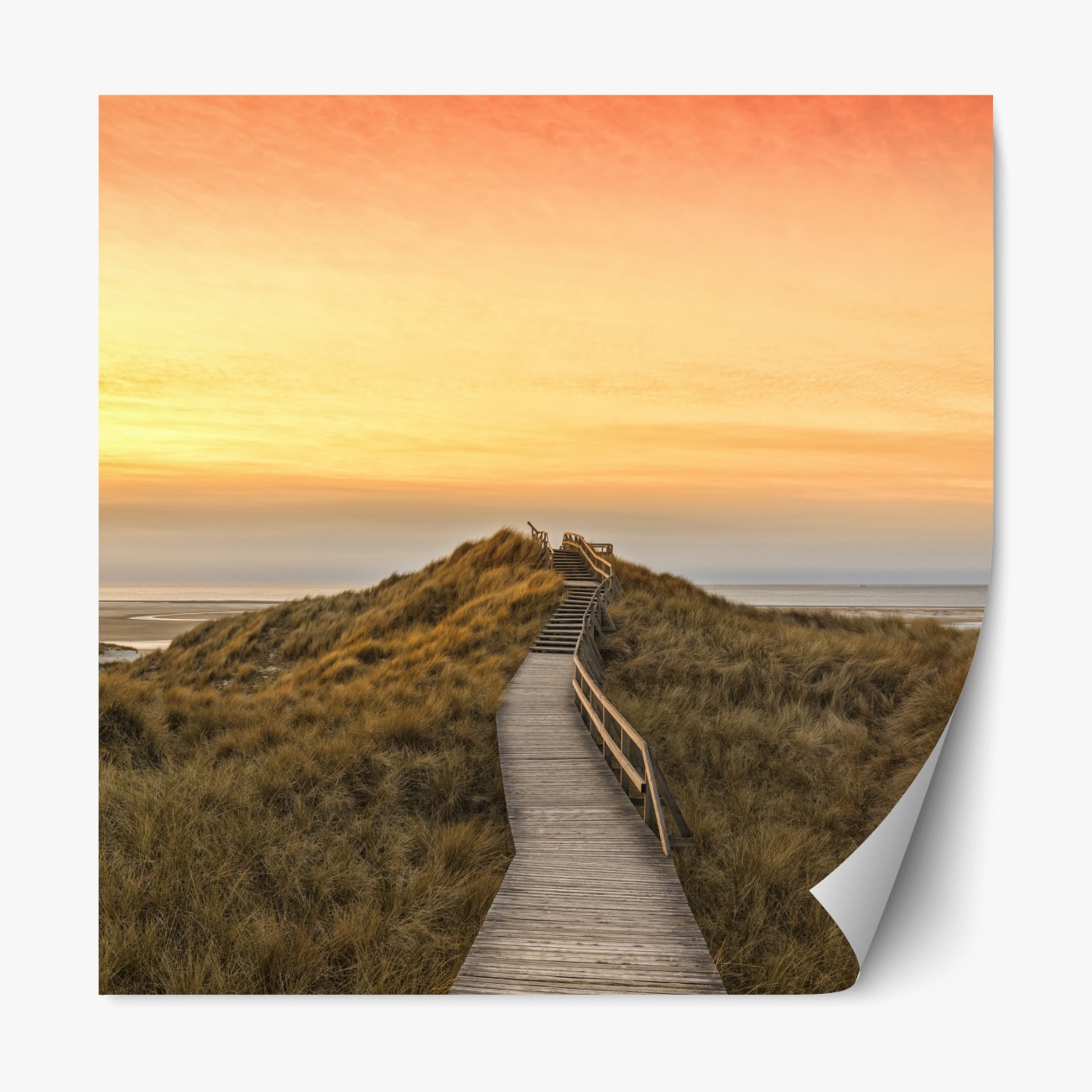 Repositionierbarer Aufkleber Sonnenuntergang am strand von Amrum