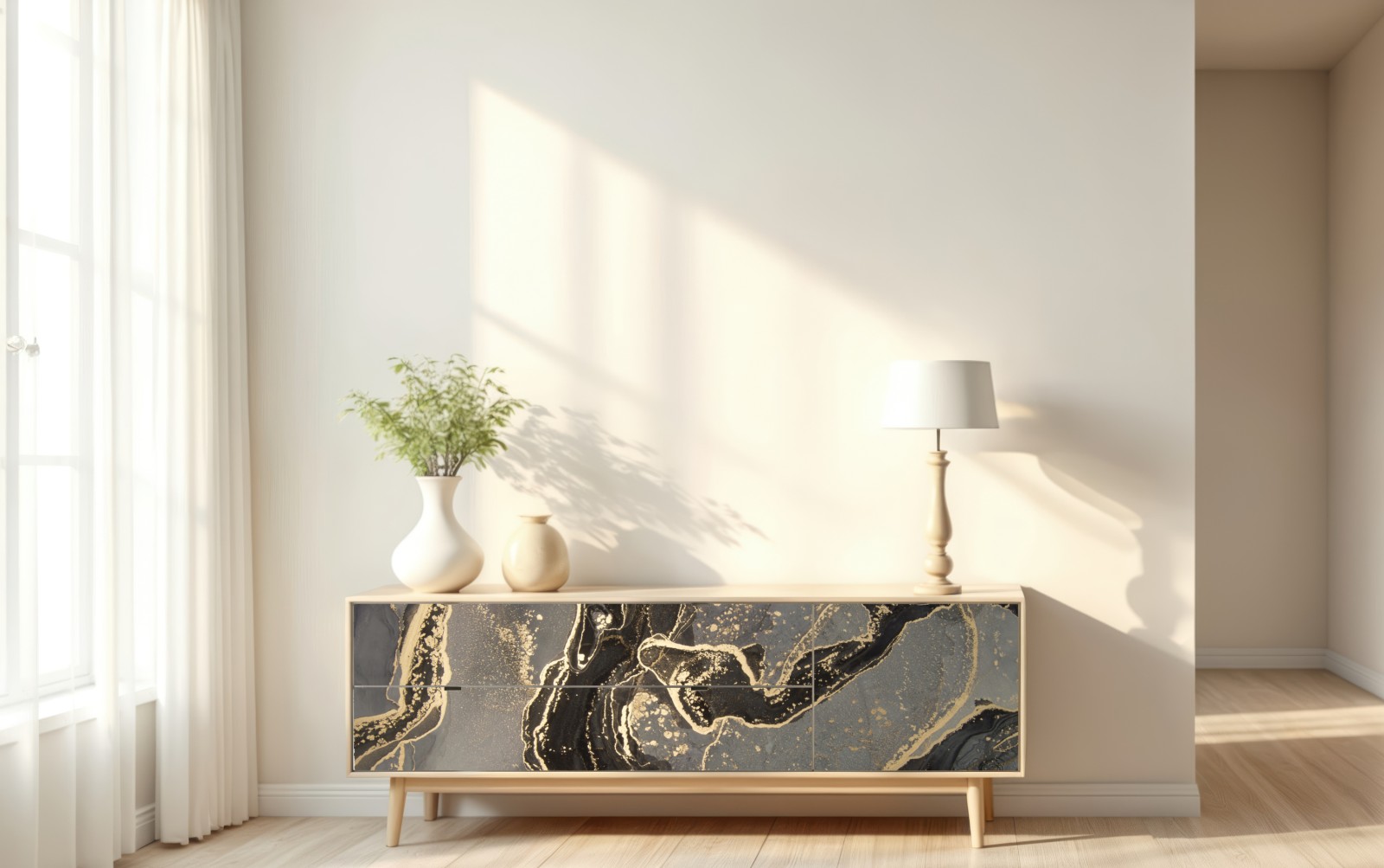Repositionierbarer Aufkleber Luxuriöser schwarz-goldener marmor abstrakt