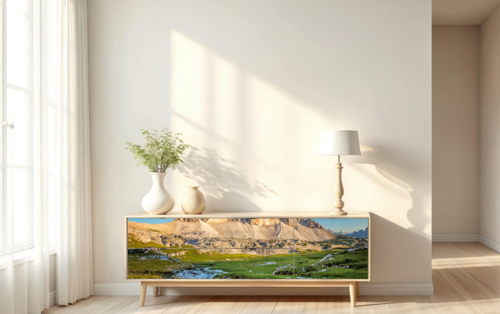 Repositionierbarer Aufkleber Tre Cime di Lavaredo über der alpenwiese