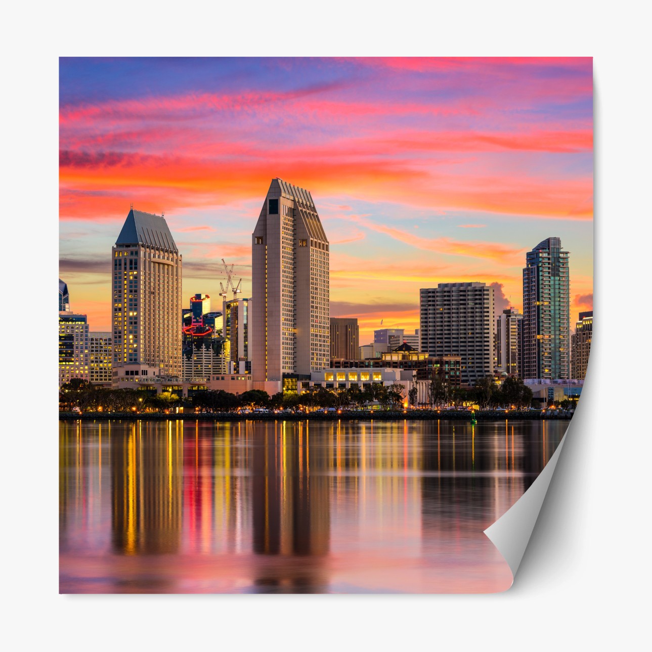 Repositionierbarer Aufkleber San Diego skyline bei sonnenuntergang