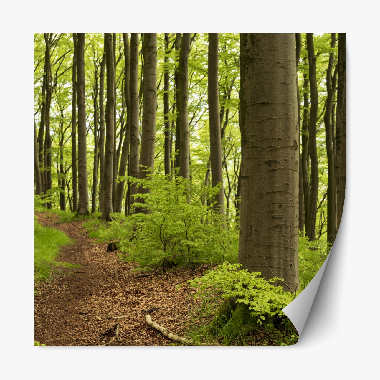 Repositionierbarer Aufkleber Ruhiger grüner waldweg