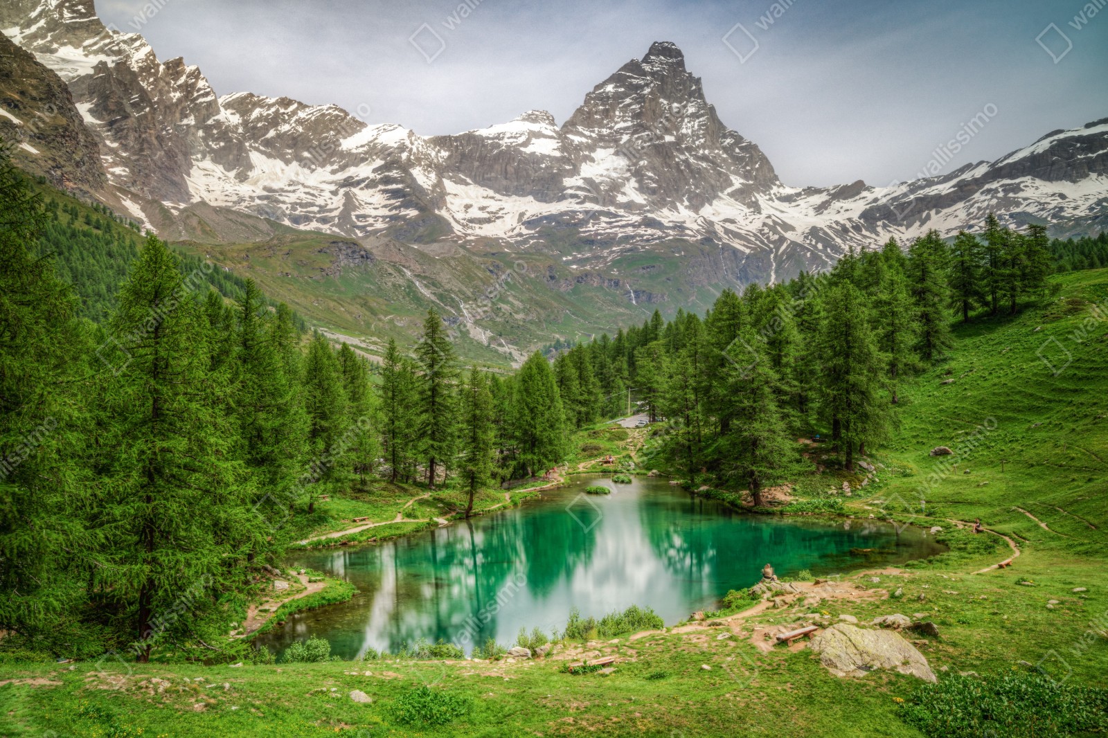 Repositionierbarer Aufkleber Blauer see bei Cervinia