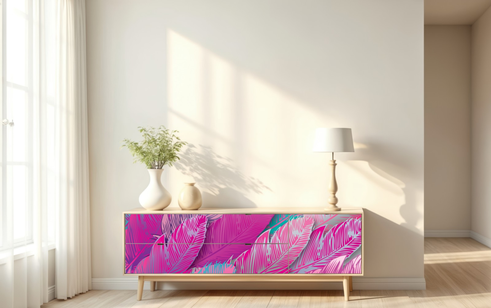 Repositionierbarer Aufkleber Irisierendes rosa federmuster