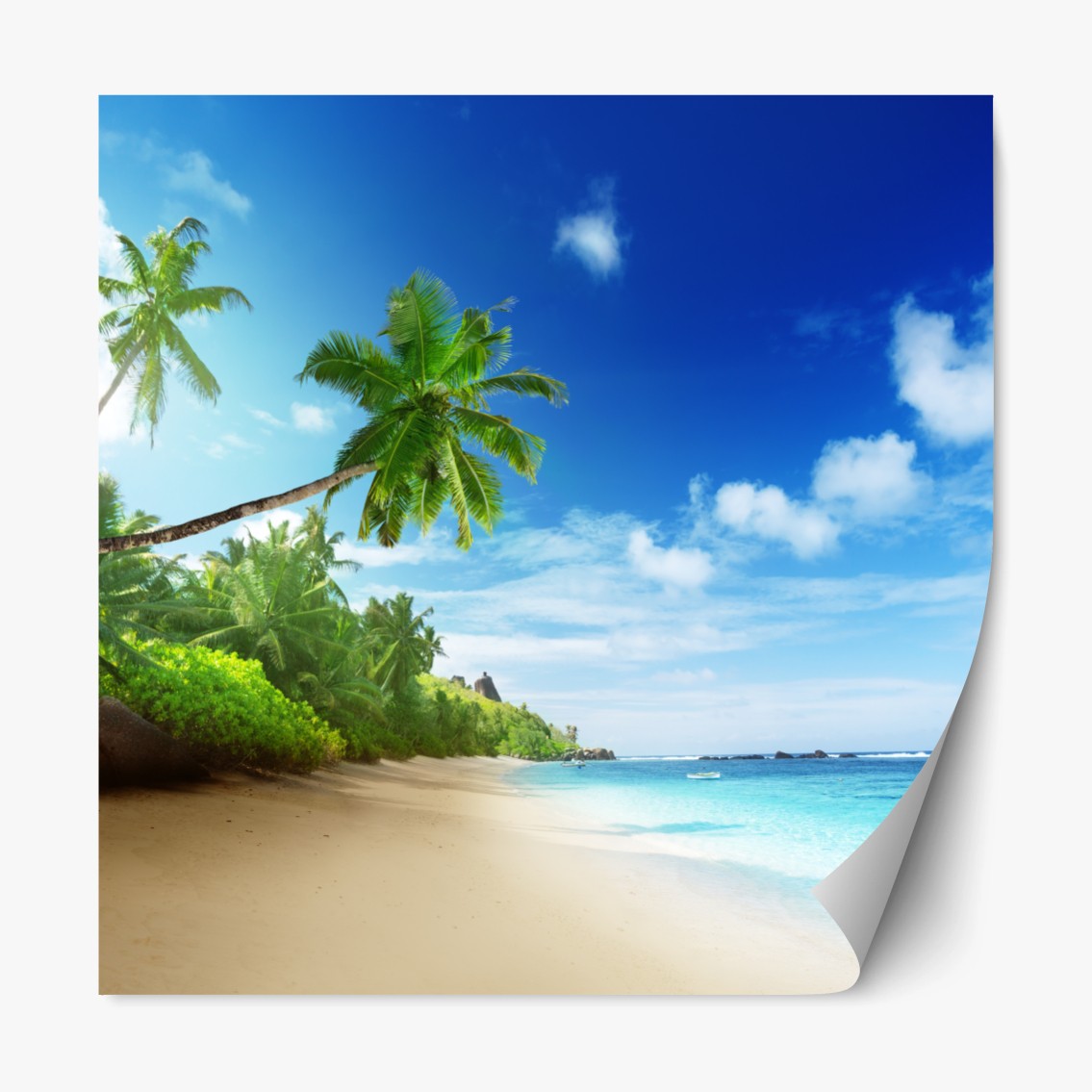 Repositionierbarer Aufkleber Sonnenuntergang am strand von Mahe, Seychellen