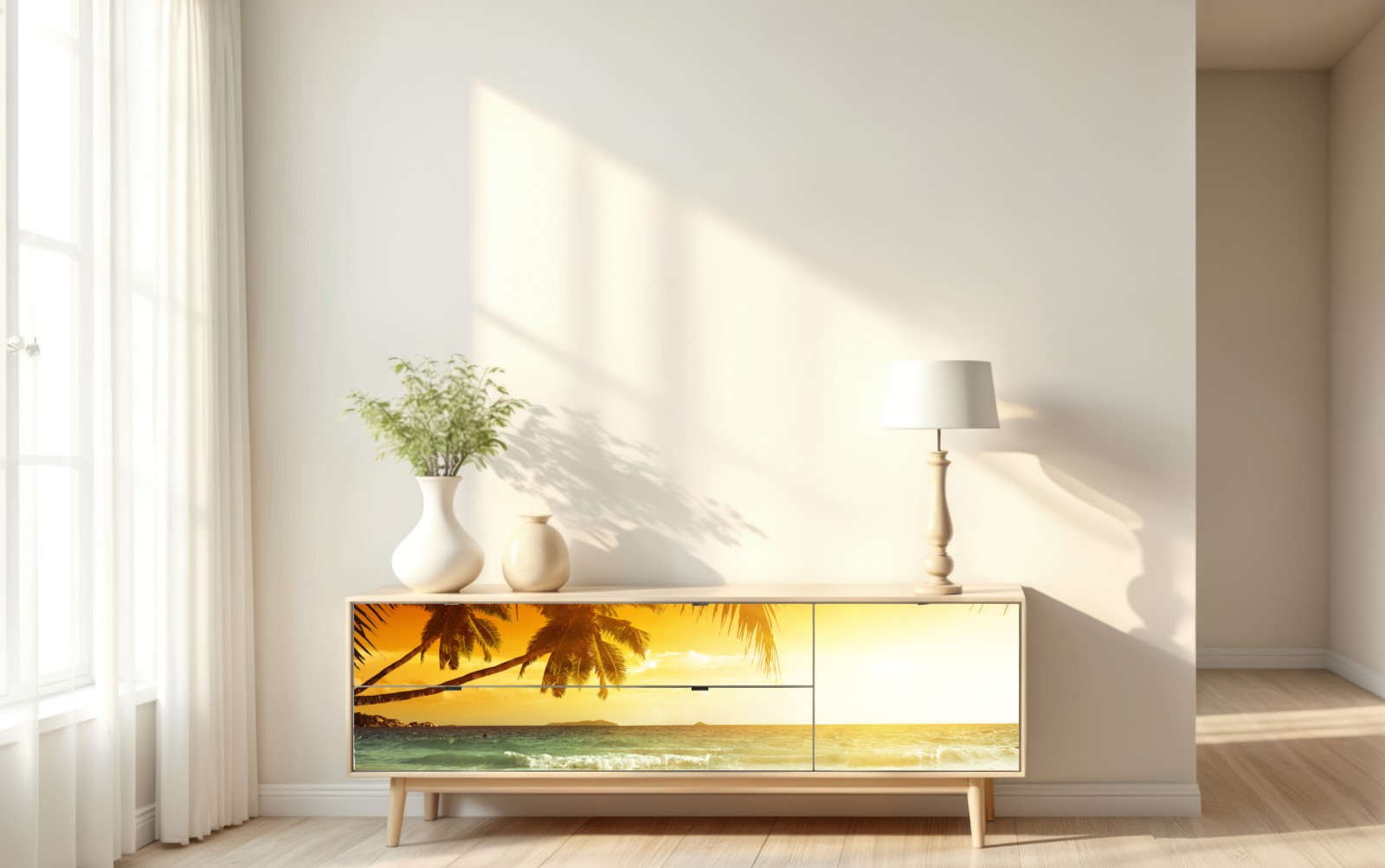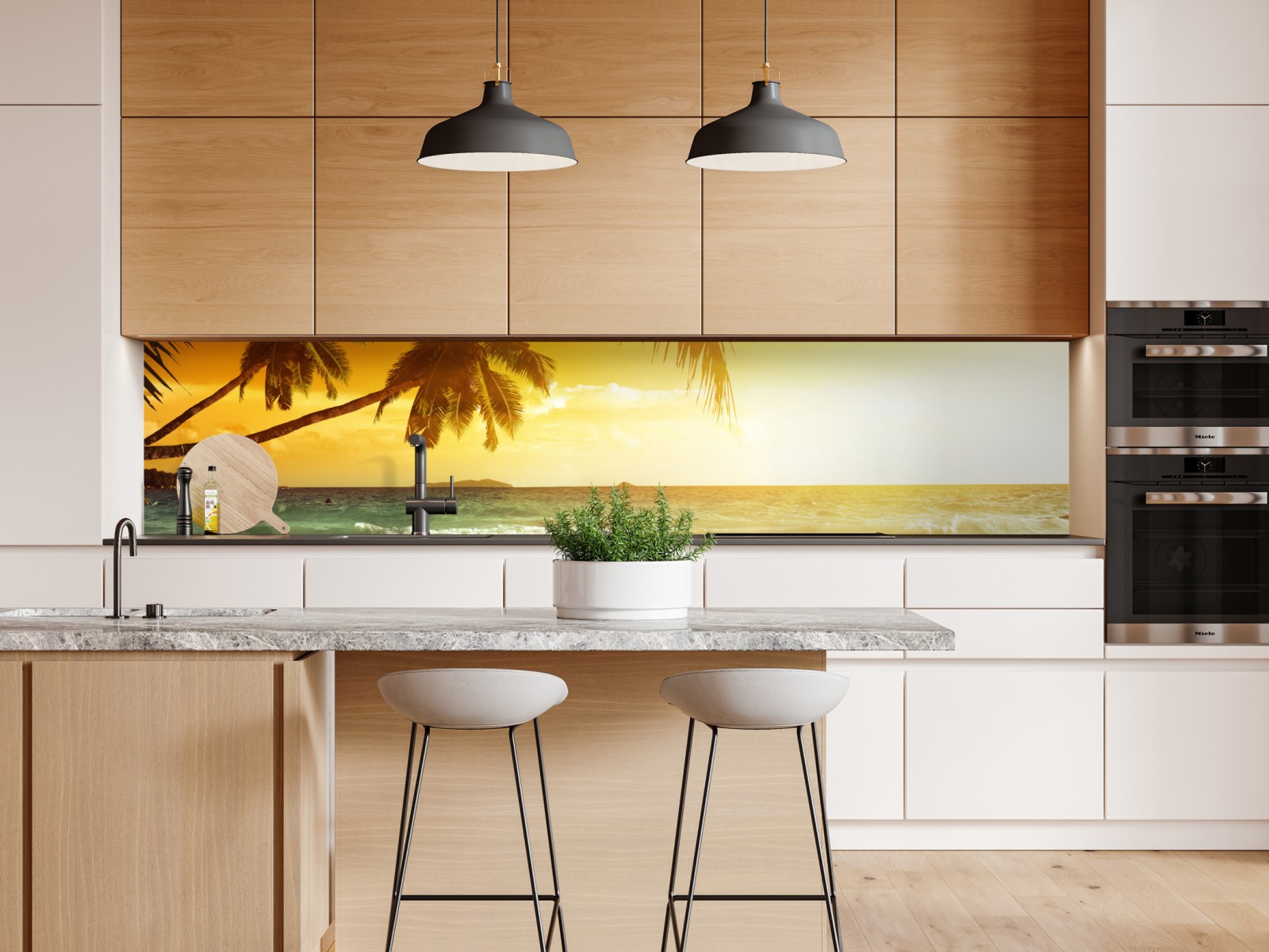 Repositionierbarer Aufkleber Goldener sonnenuntergang an einem strand in der Karibik