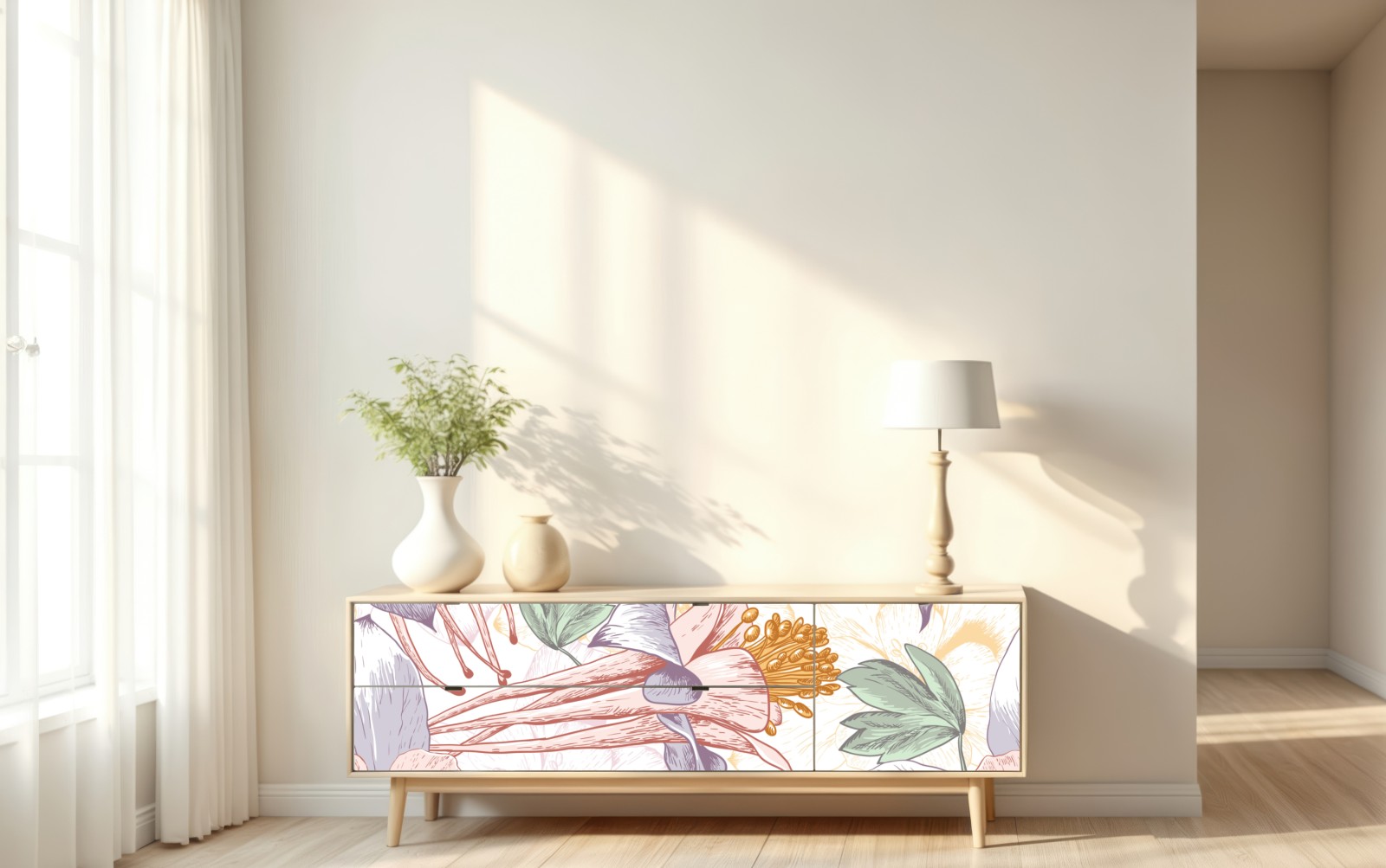 Repositionierbarer Aufkleber Zarte pastellblumen im botanischen stil