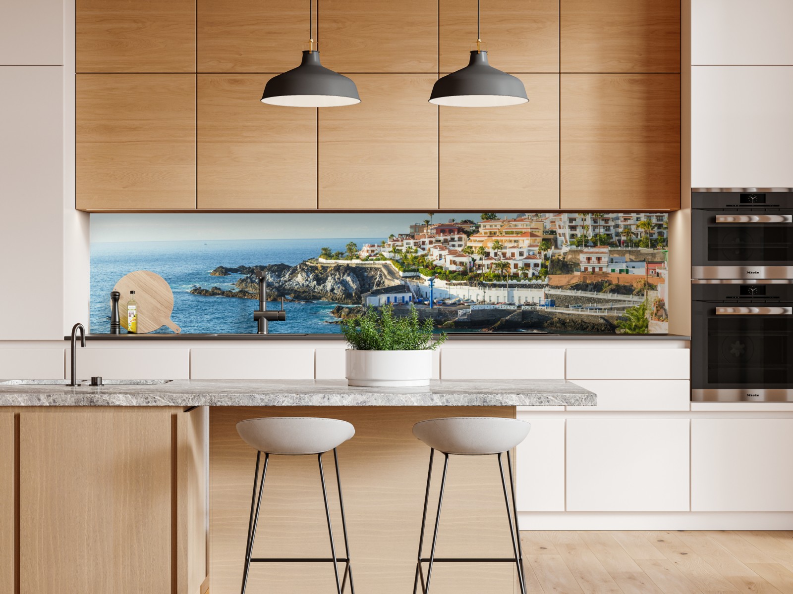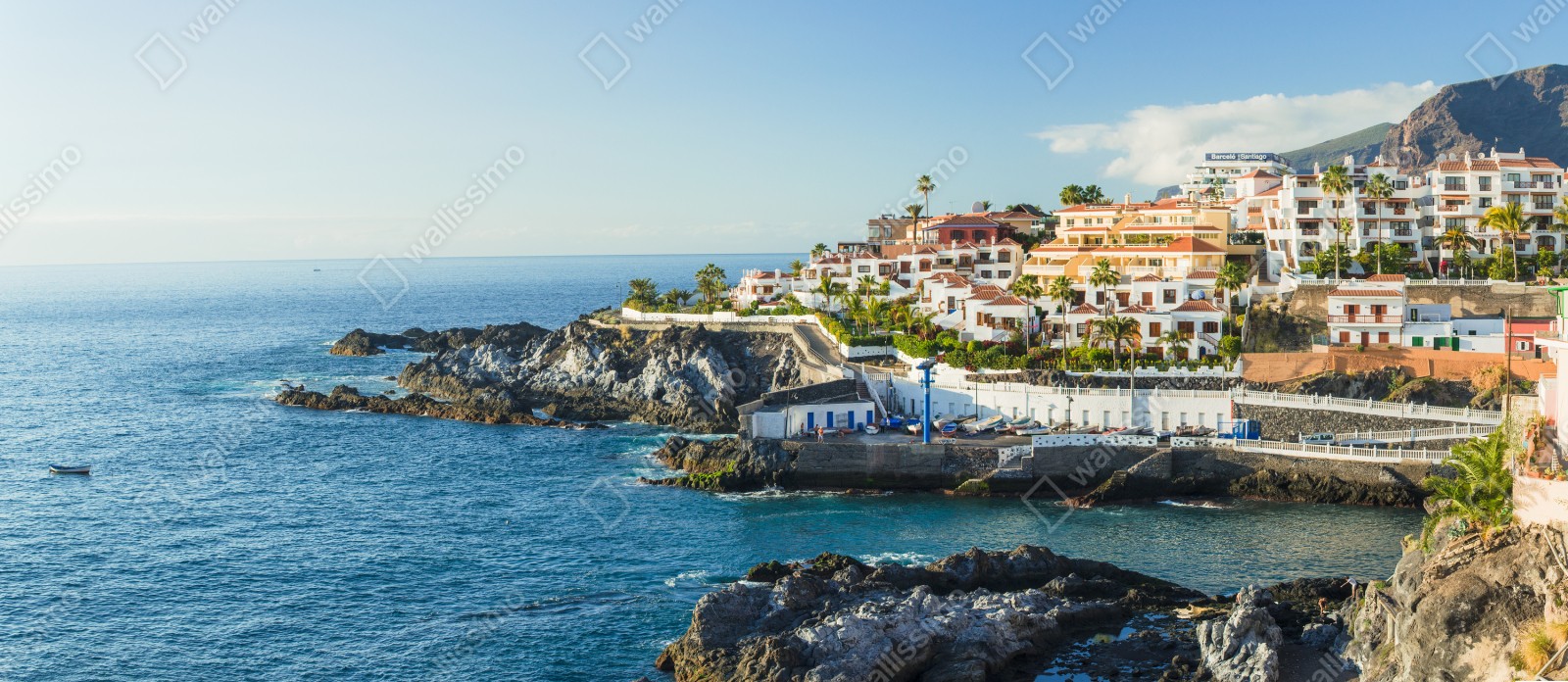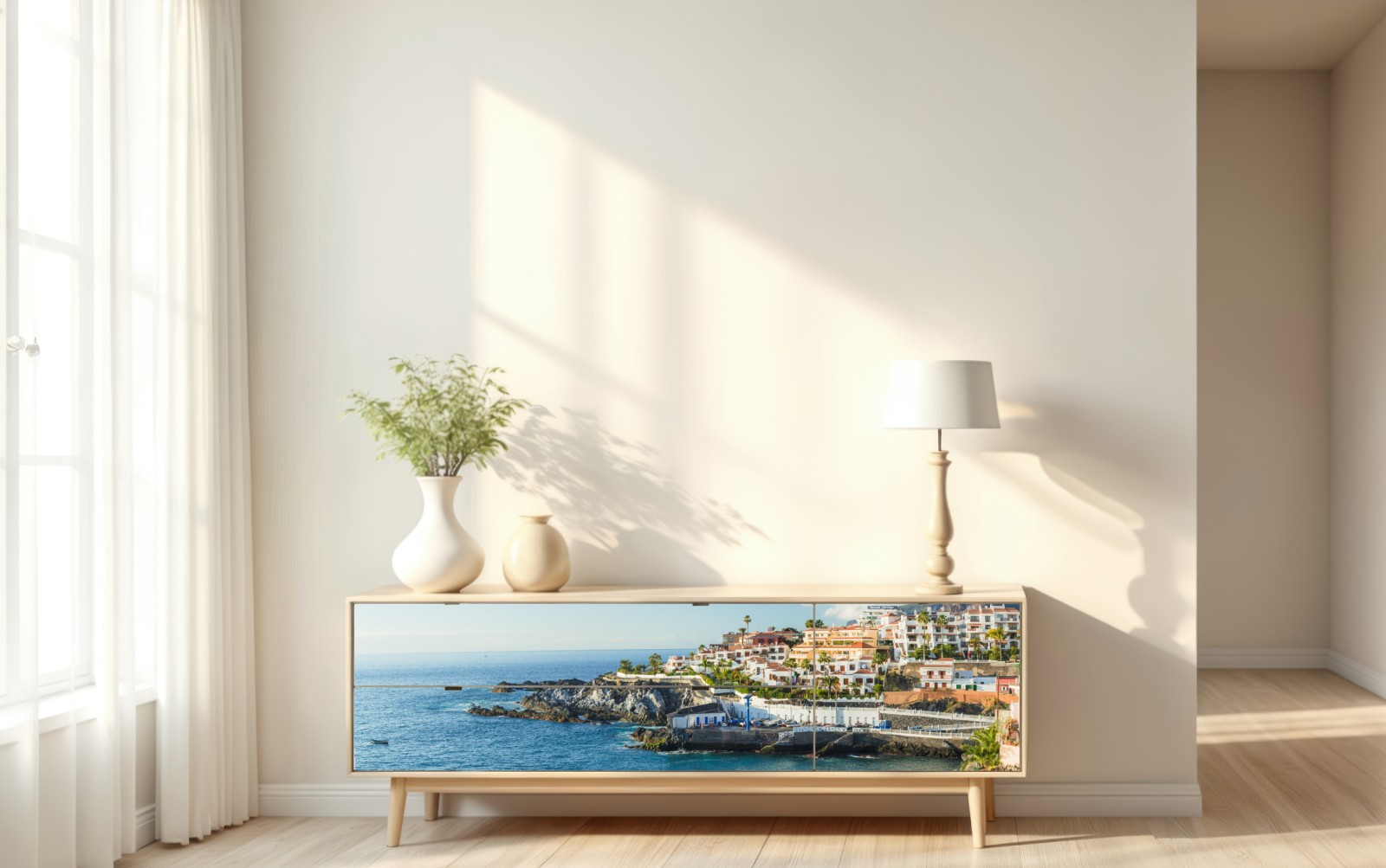 Repositionierbarer Aufkleber Sonnige panorama der küstenstadt