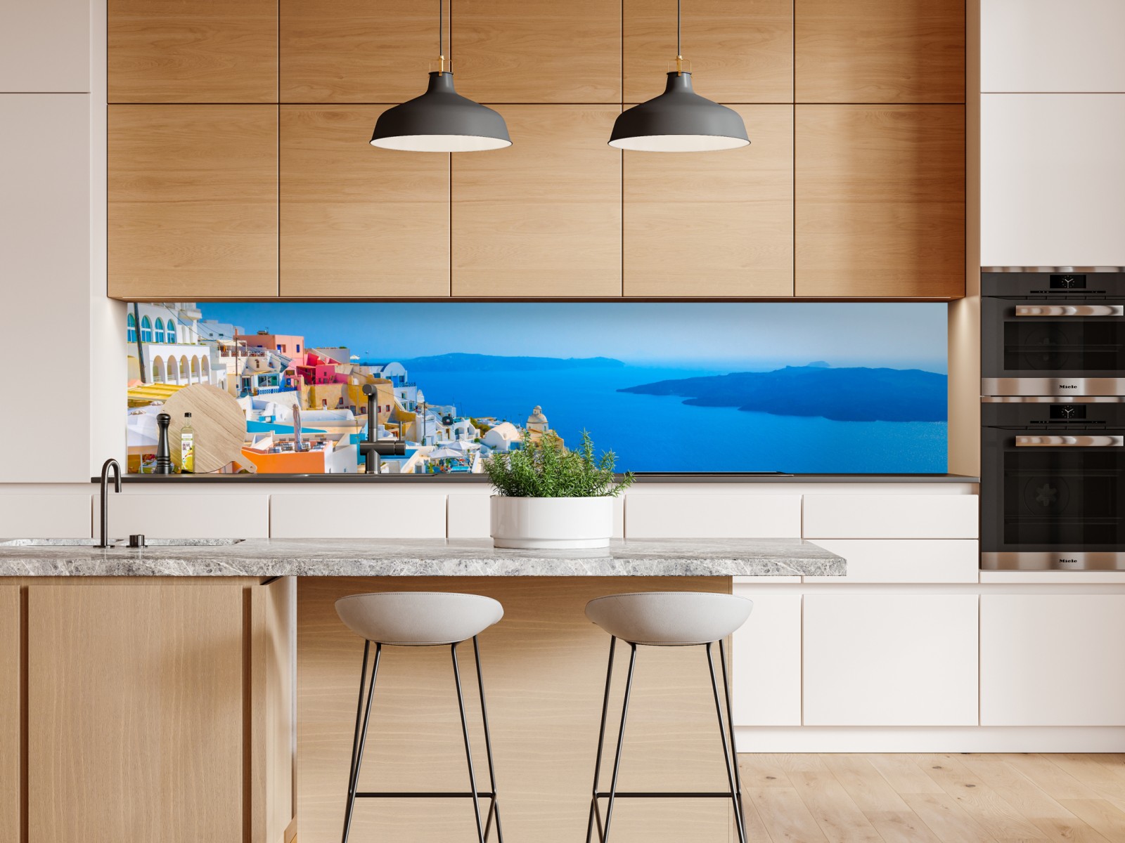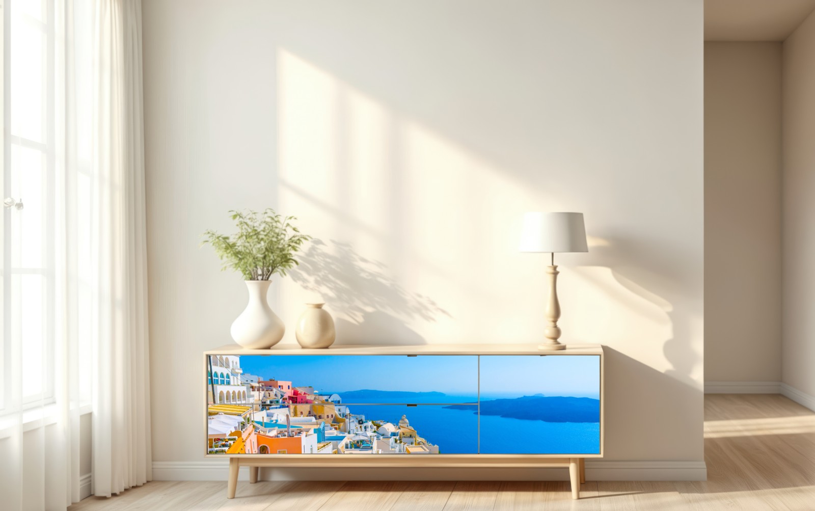 Repositionierbarer Aufkleber Sonnige ansicht der caldera von Santorini