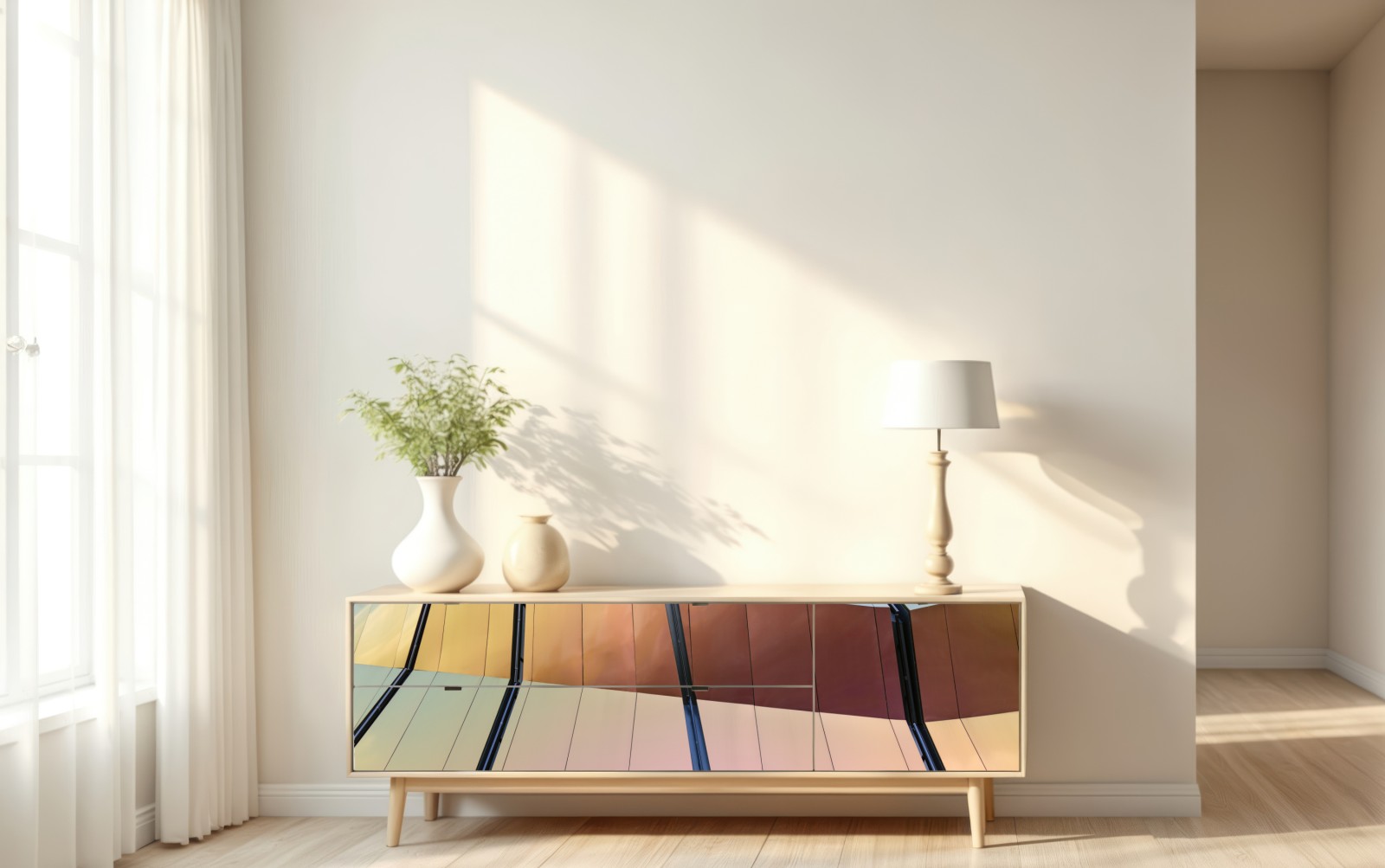 Repositionierbarer Aufkleber Irisierende moderne fassade aus paneelen