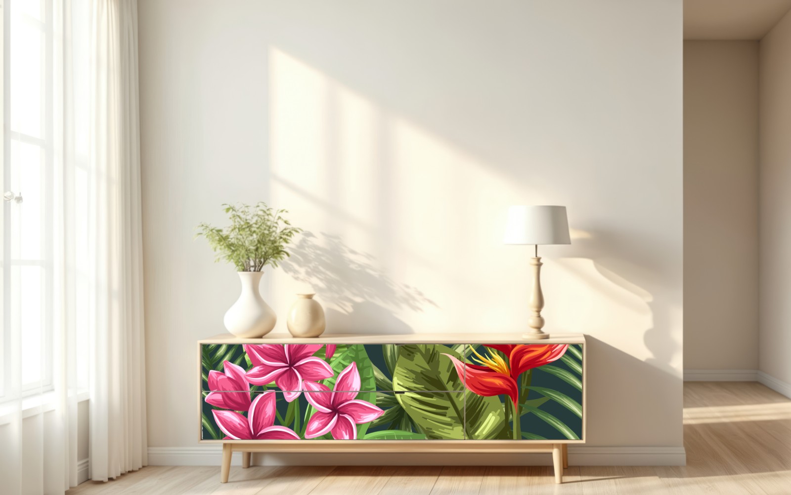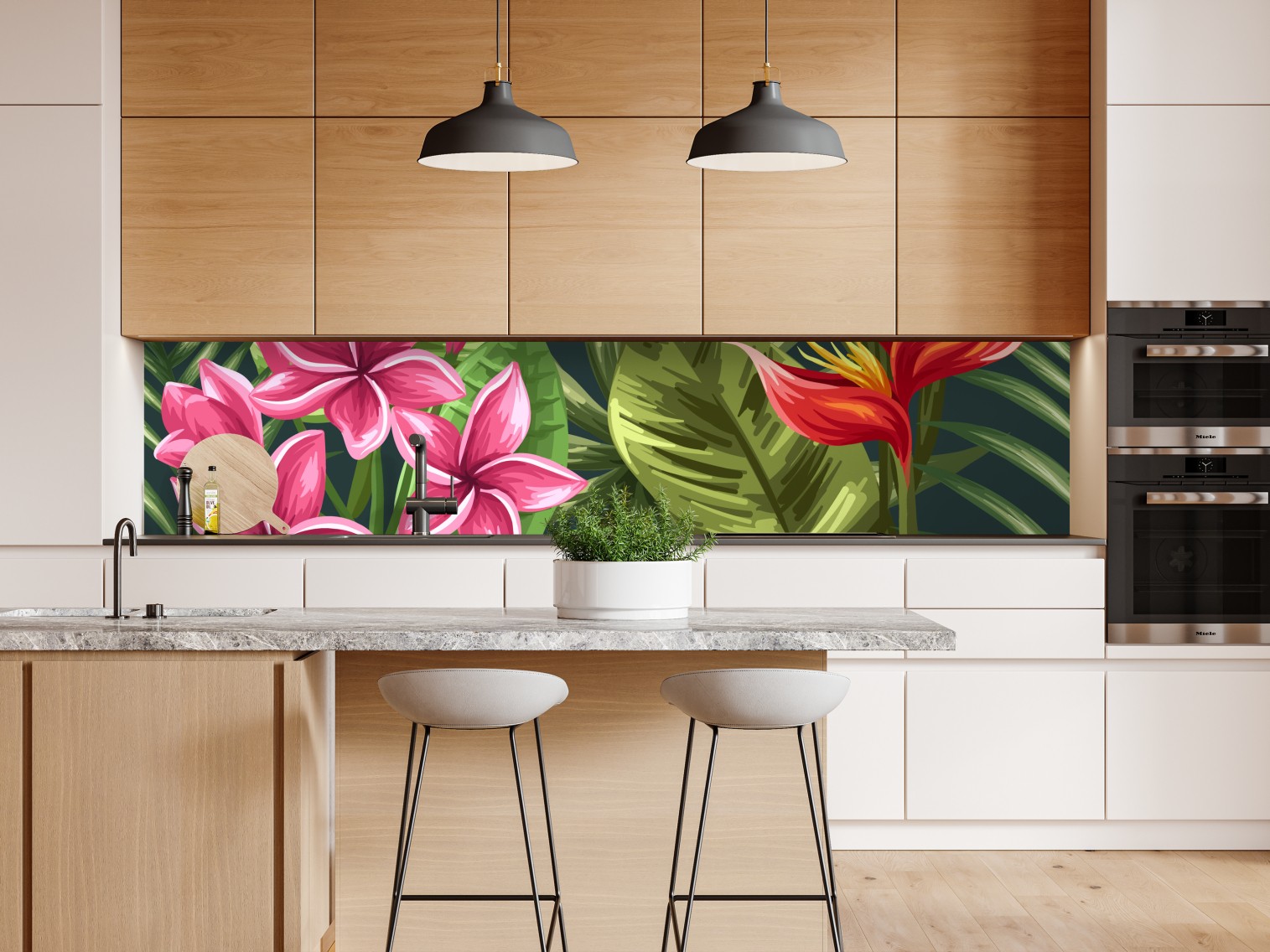 Repositionierbarer Aufkleber Tropisches hibiskus- und plumeria-blumenmuster