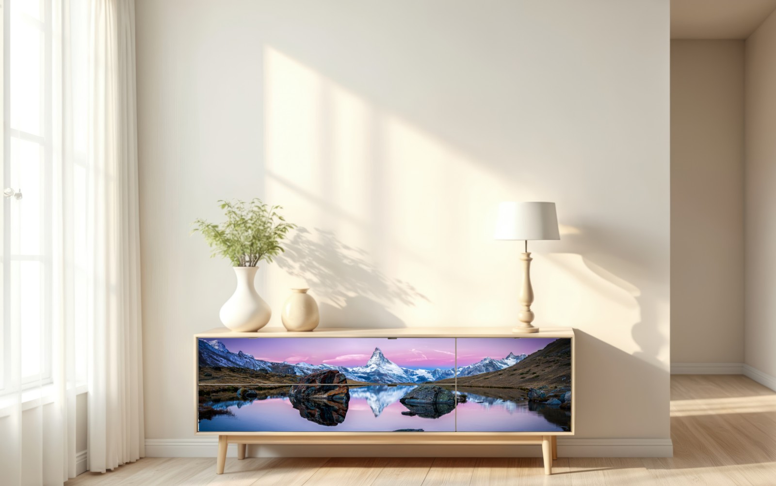 Repositionierbarer Aufkleber Sanfte alpine spiegelung bei dämmerung