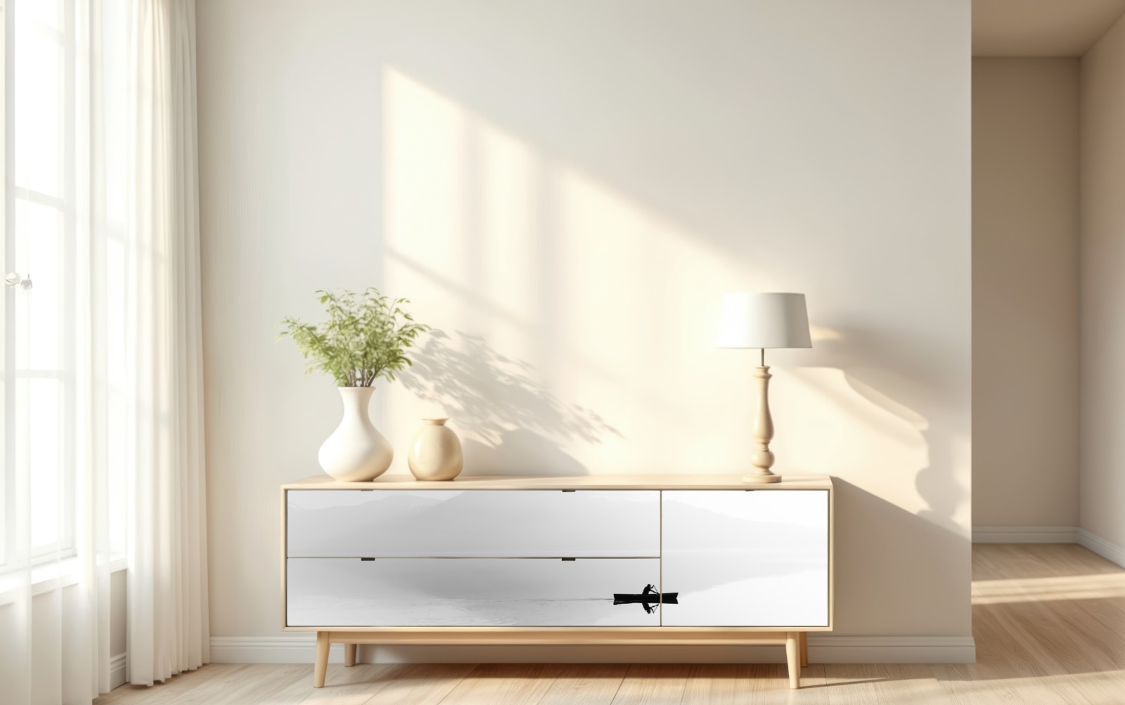 Repositionierbarer Aufkleber Einsamer ruderer auf einem nebligen see