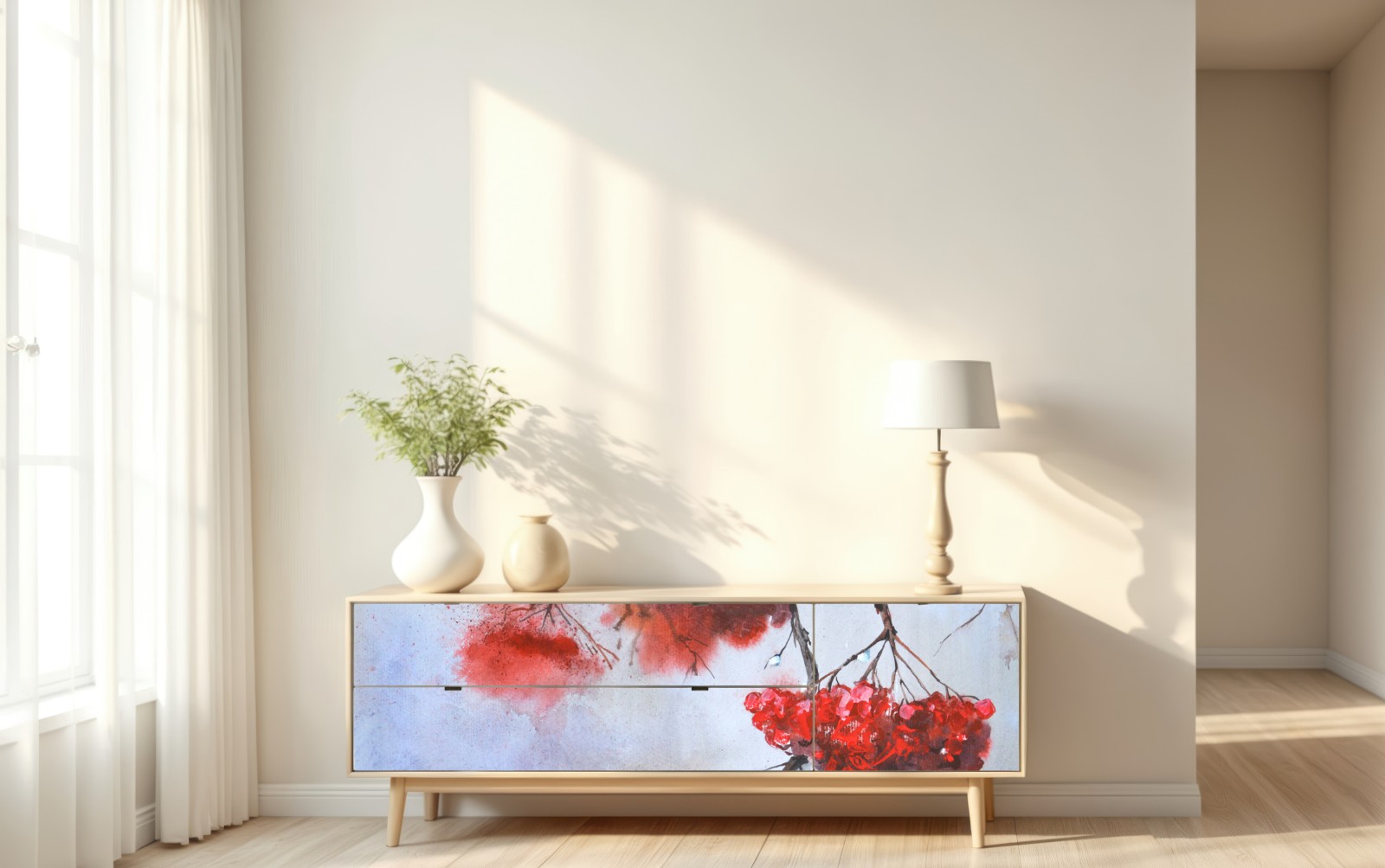 Repositionierbarer Aufkleber Aquarell rote beeren an zweigen