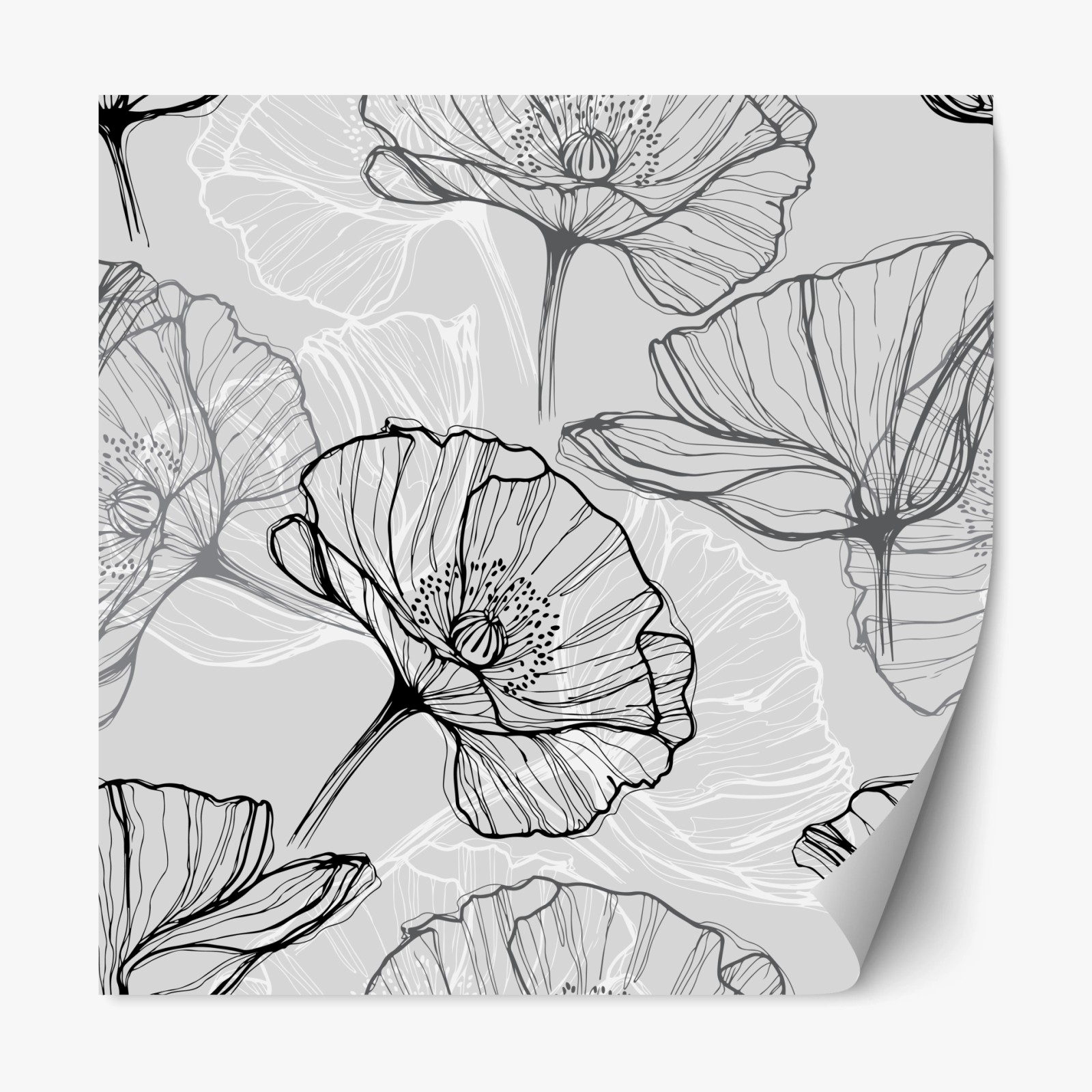 Repositionierbarer Aufkleber Zarter grauer mohn in linienzeichnung