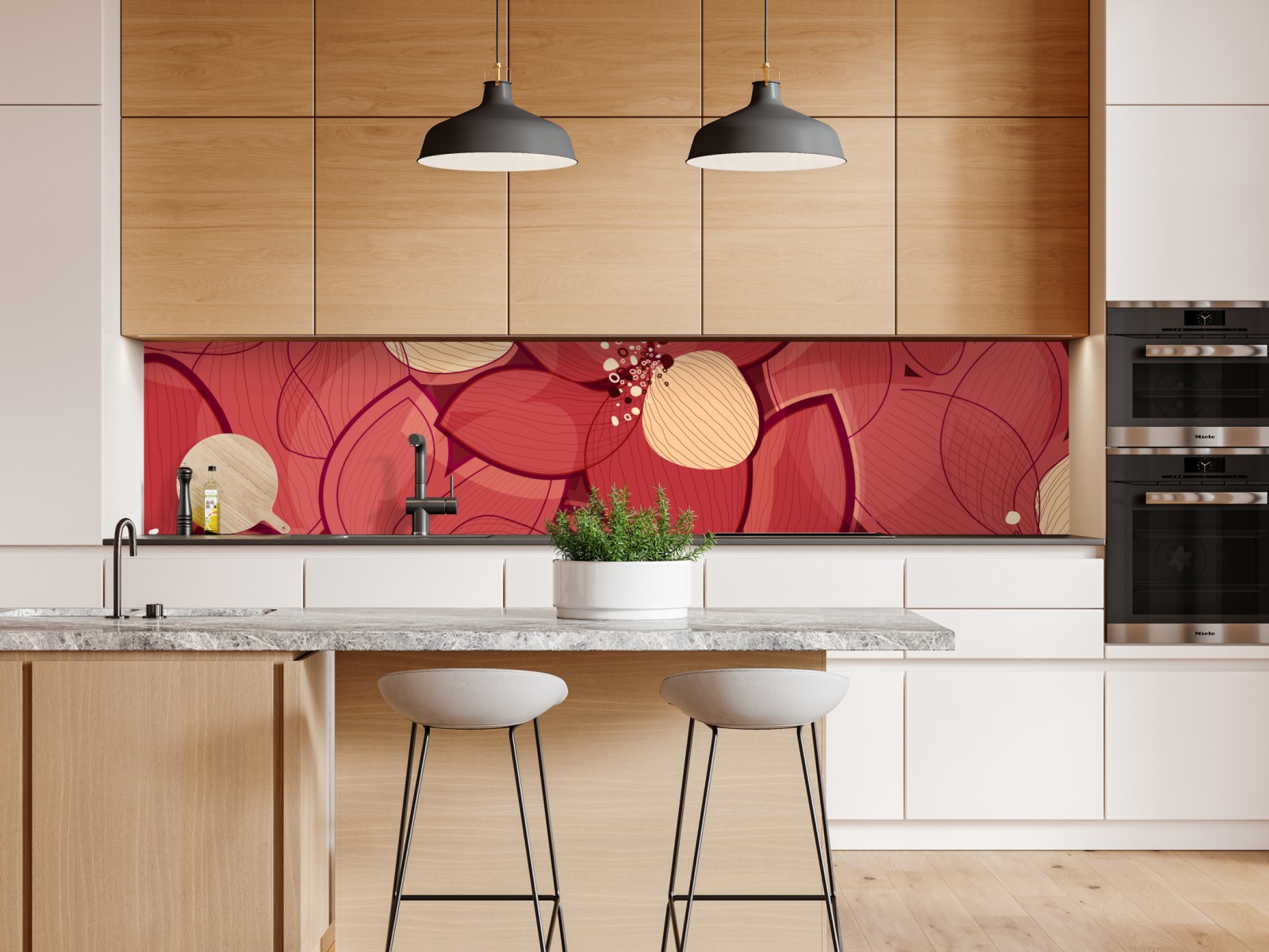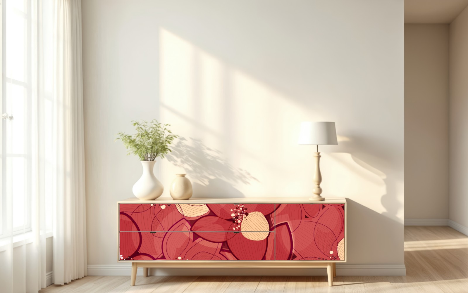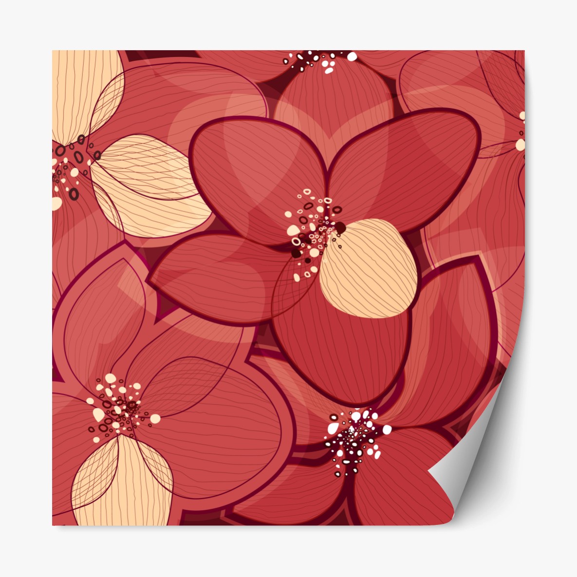 Repositionierbarer Aufkleber Rotes blumenmuster mit beigen mittelpunkten