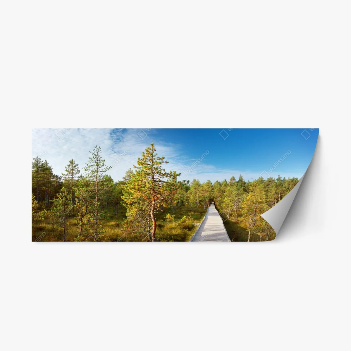 Repositionierbarer Aufkleber Sonniger steg durch den kiefernwald