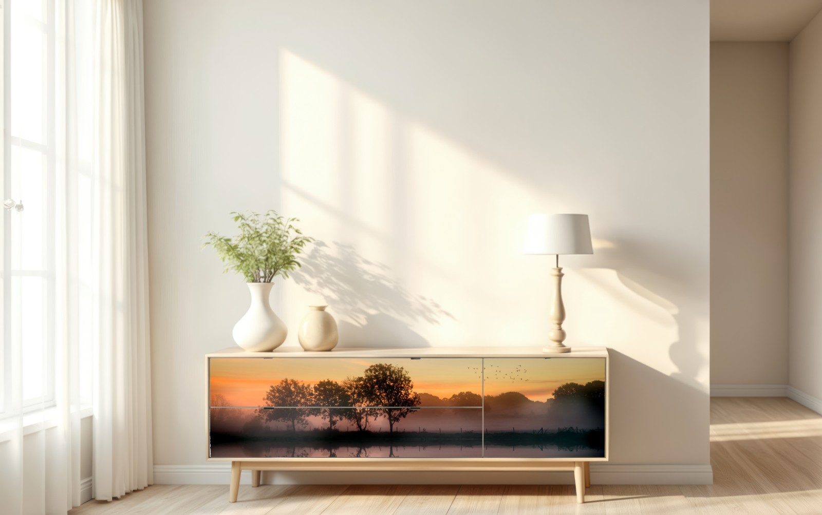Repositionierbarer Aufkleber Nebliger herbstlicher sonnenaufgang über Englischer landschaft