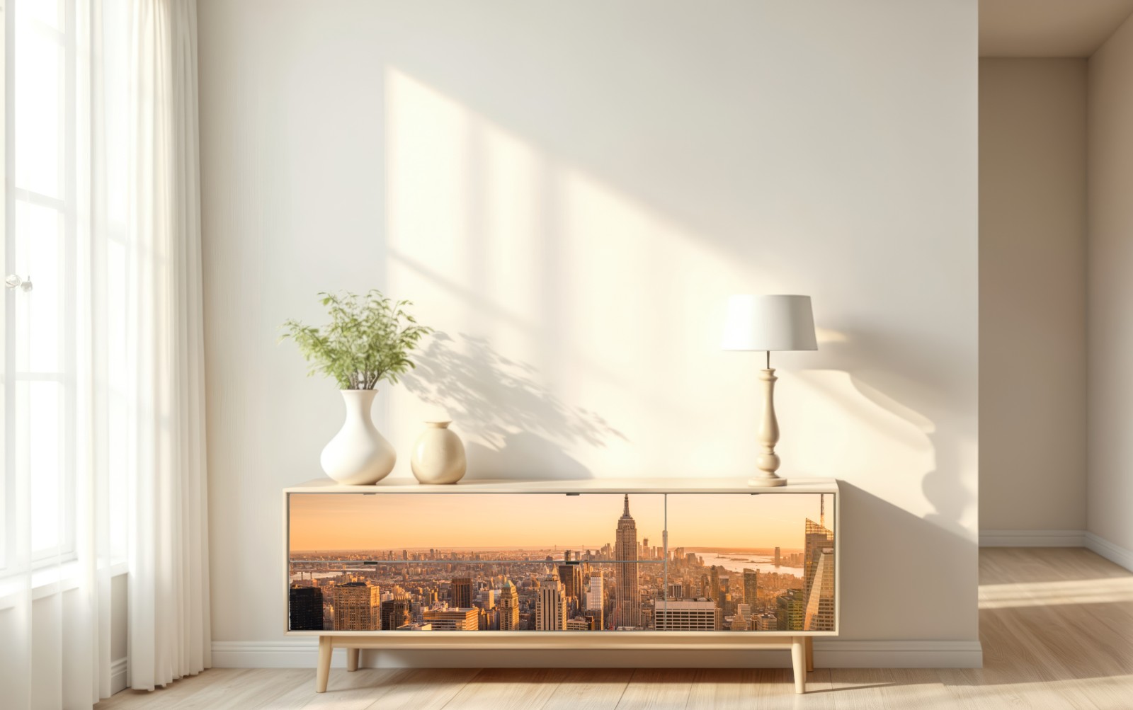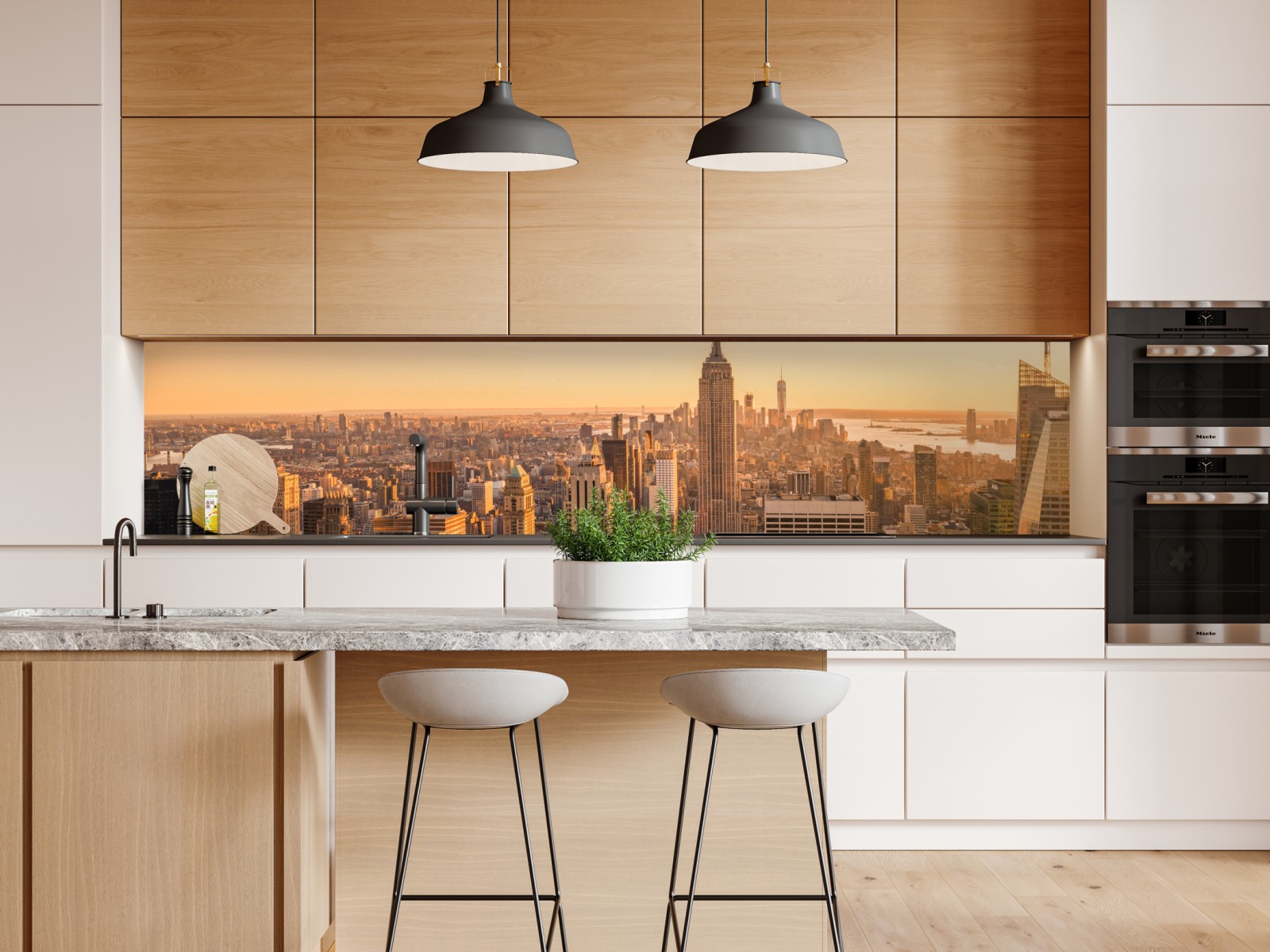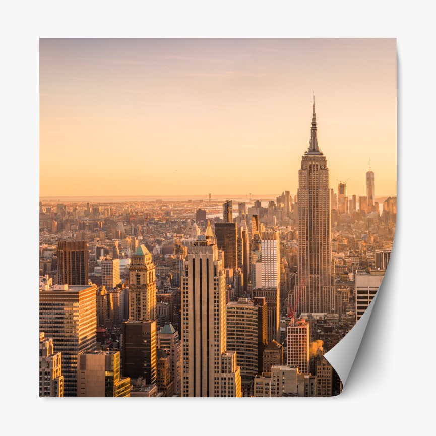 Repositionierbarer Aufkleber Goldener sonnenuntergang über der skyline von New York