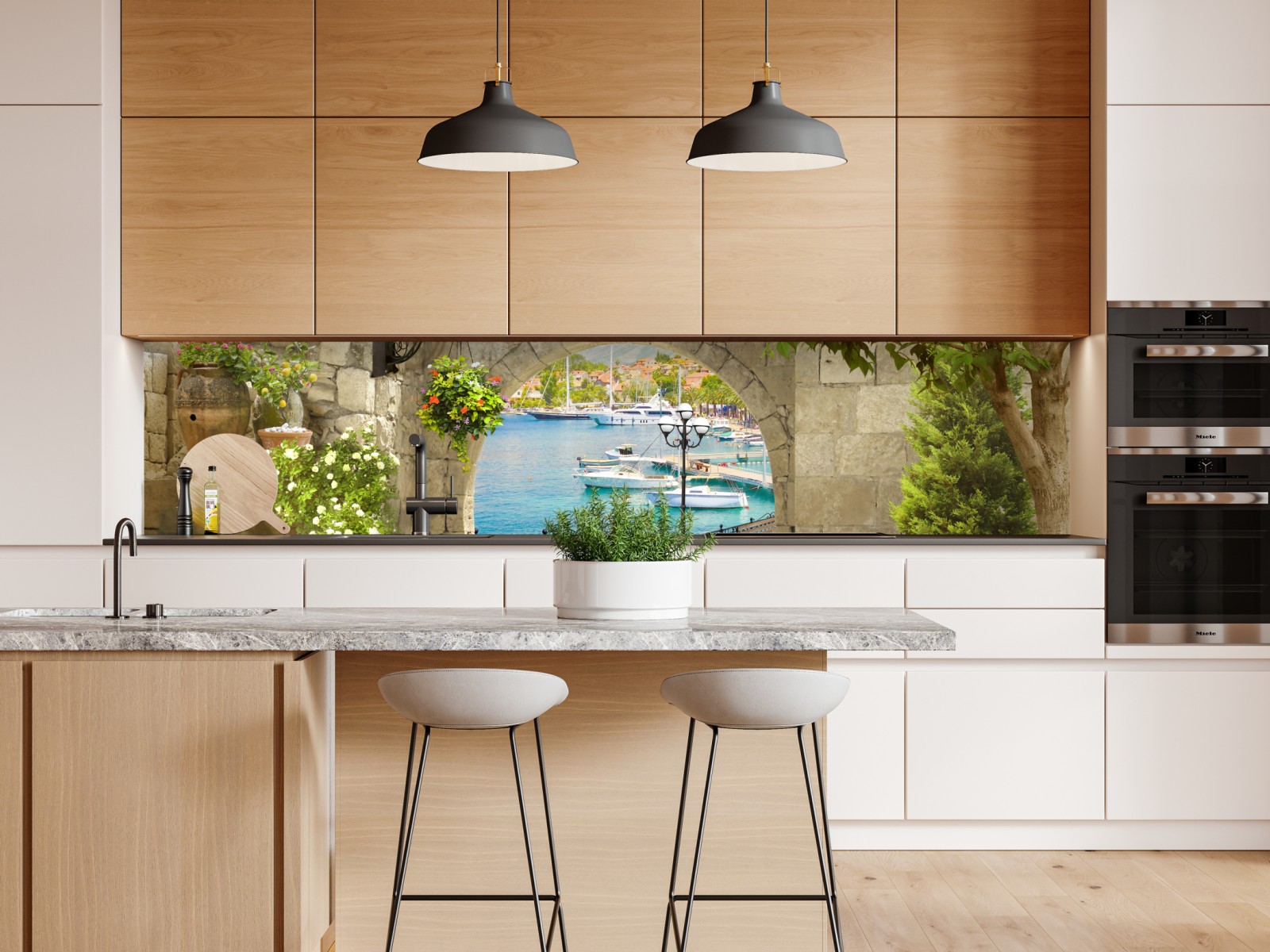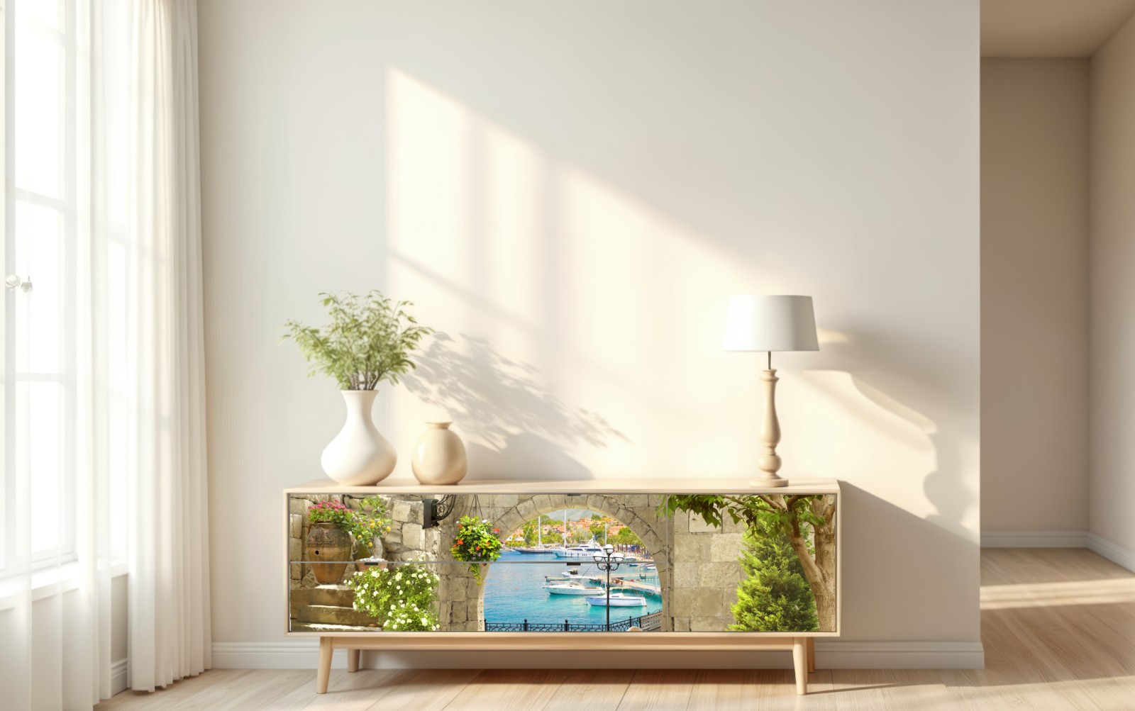 Repositionierbarer Aufkleber Mediterraner blick durch eine arkade
