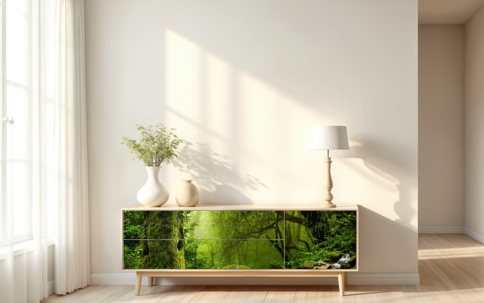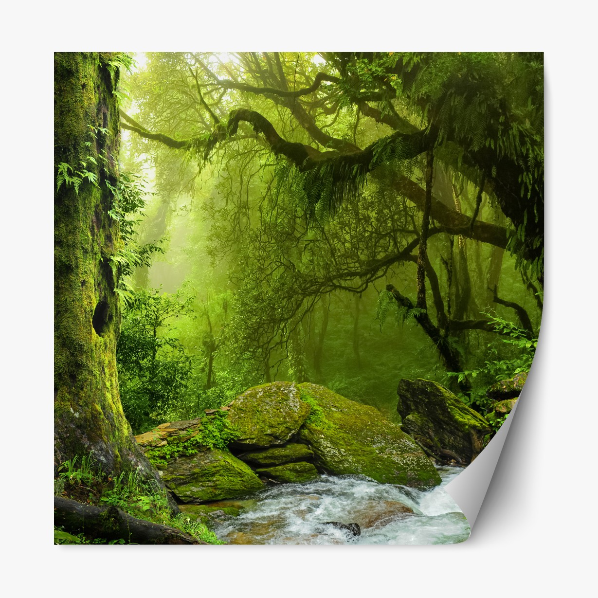 Repositionierbarer Aufkleber Verzauberter grüner waldbach