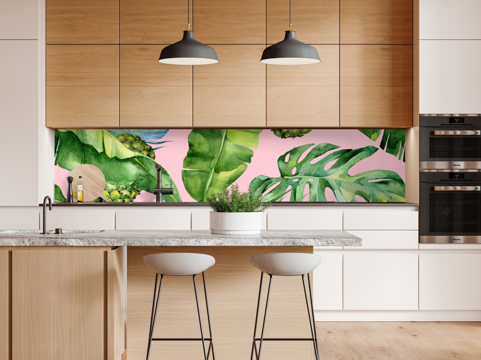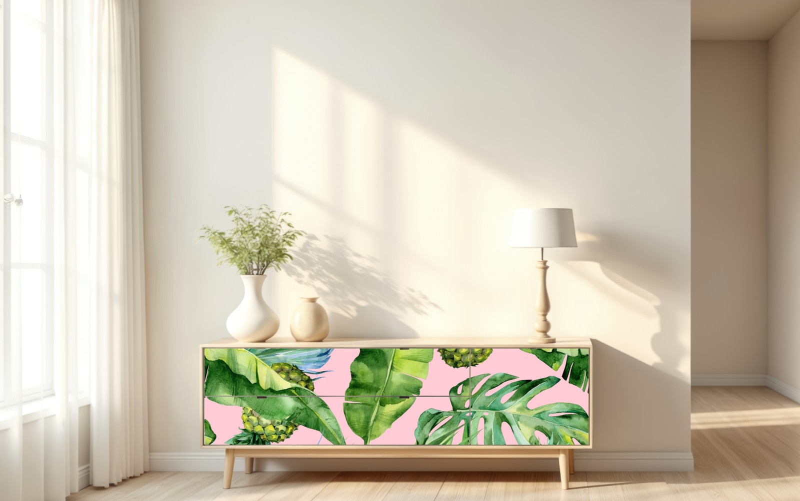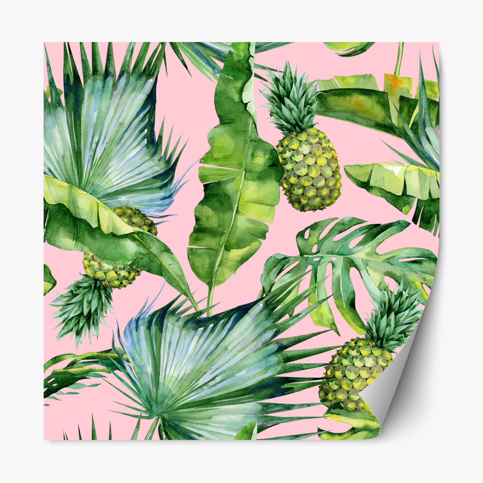 Repositionierbarer Aufkleber Tropisches ananas- und blattmuster in aquarell auf rosa hintergrund