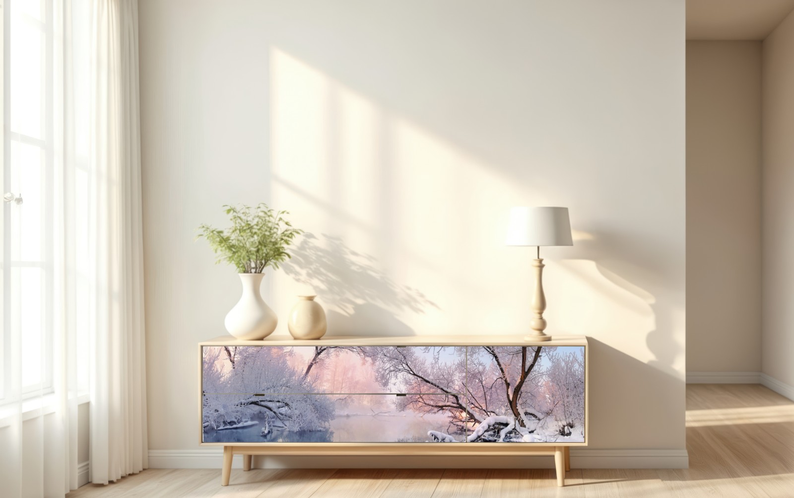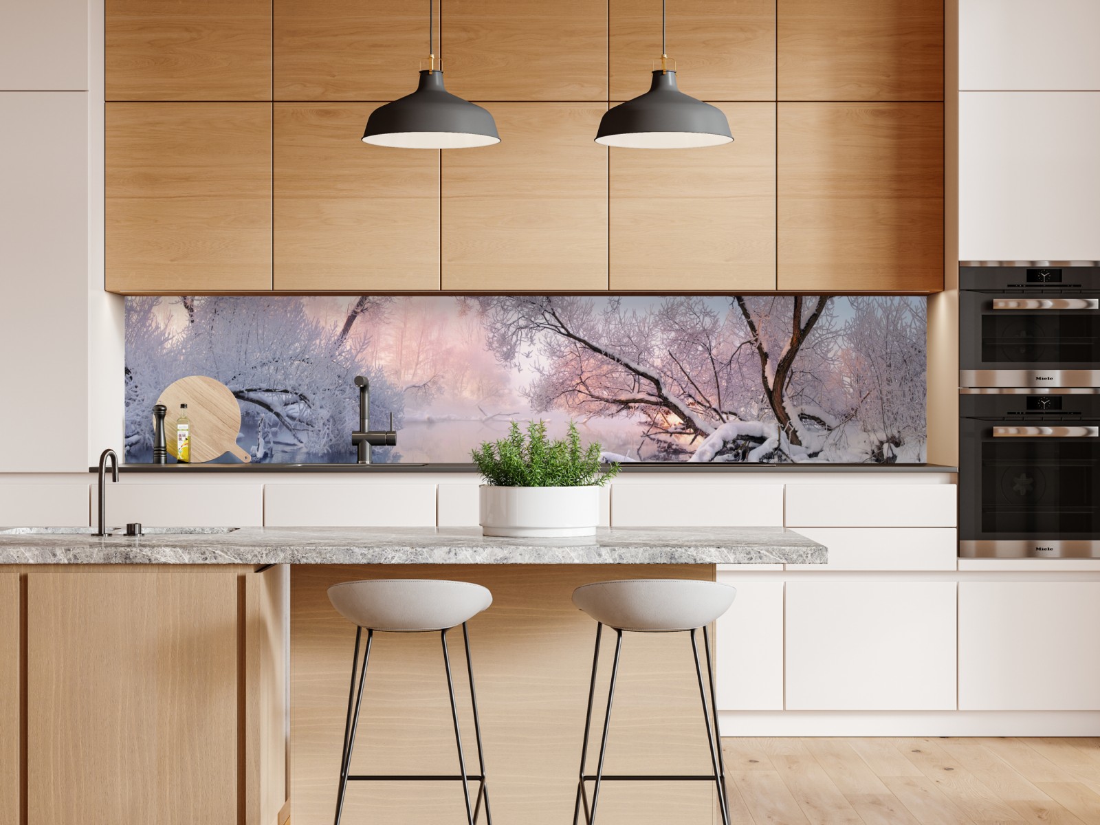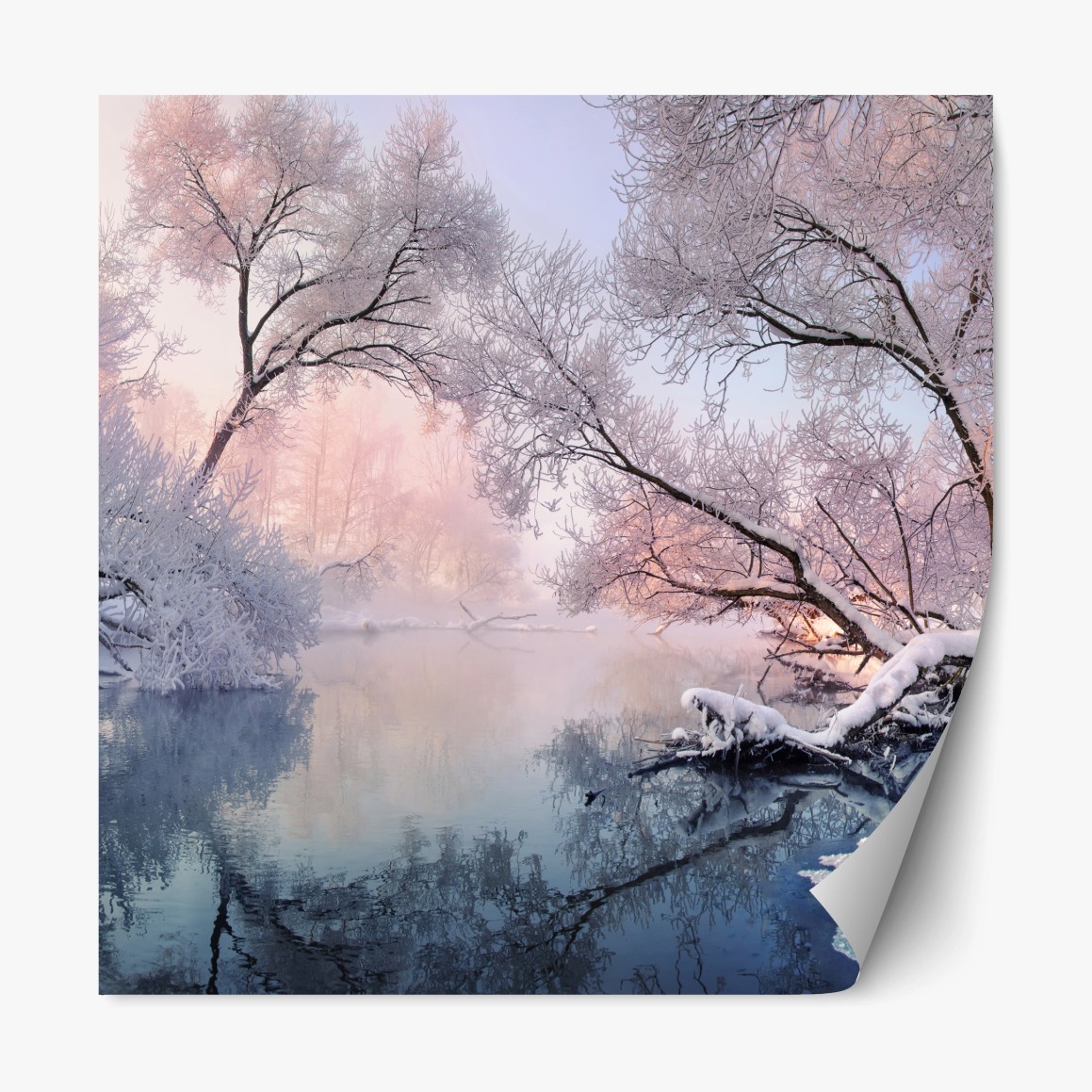 Repositionierbarer Aufkleber Ruhige winterlandschaft am fluss