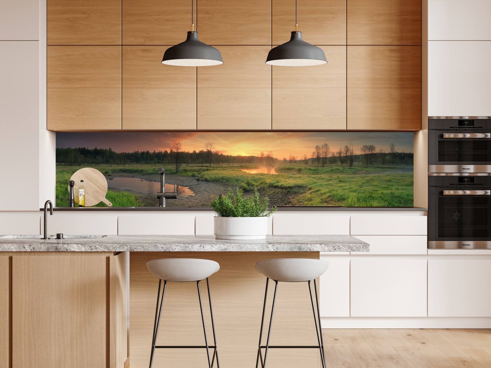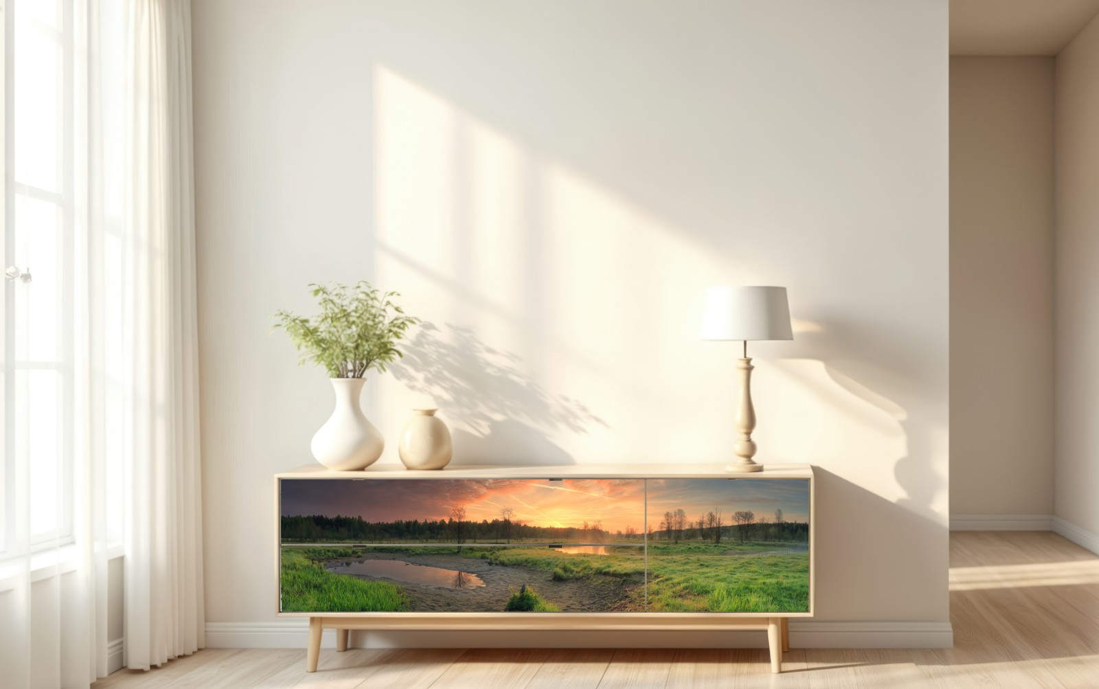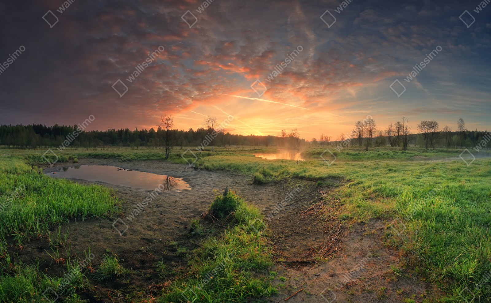 Repositionierbarer Aufkleber Sonnenuntergang über einer ruhigen wiese