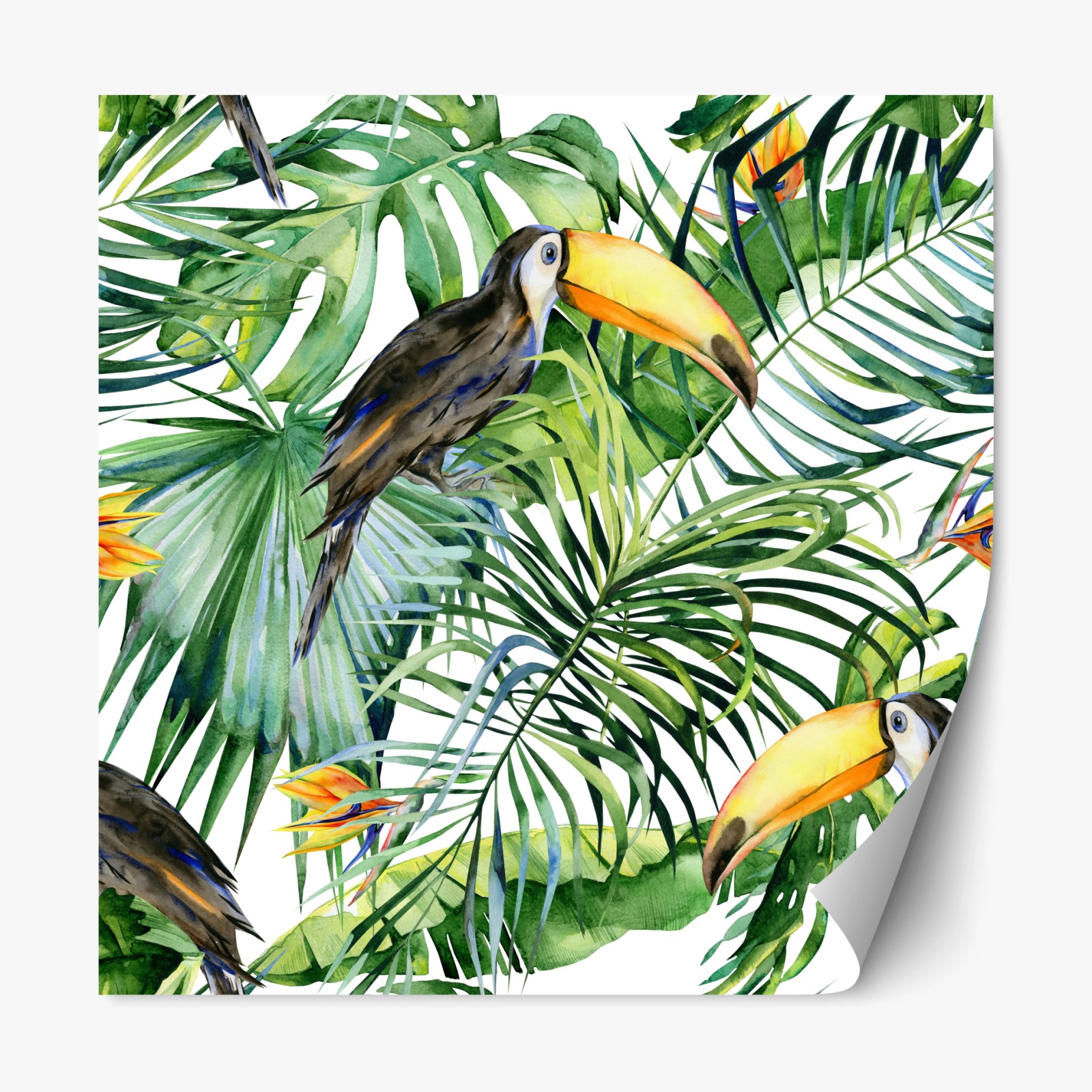 Repositionierbarer Aufkleber Aquarell tukan im tropischen muster
