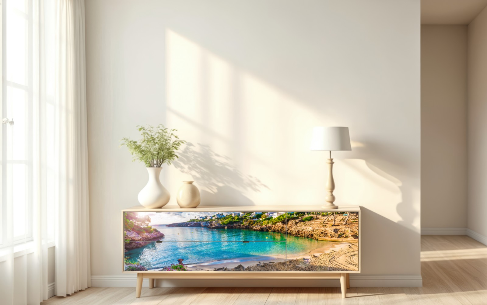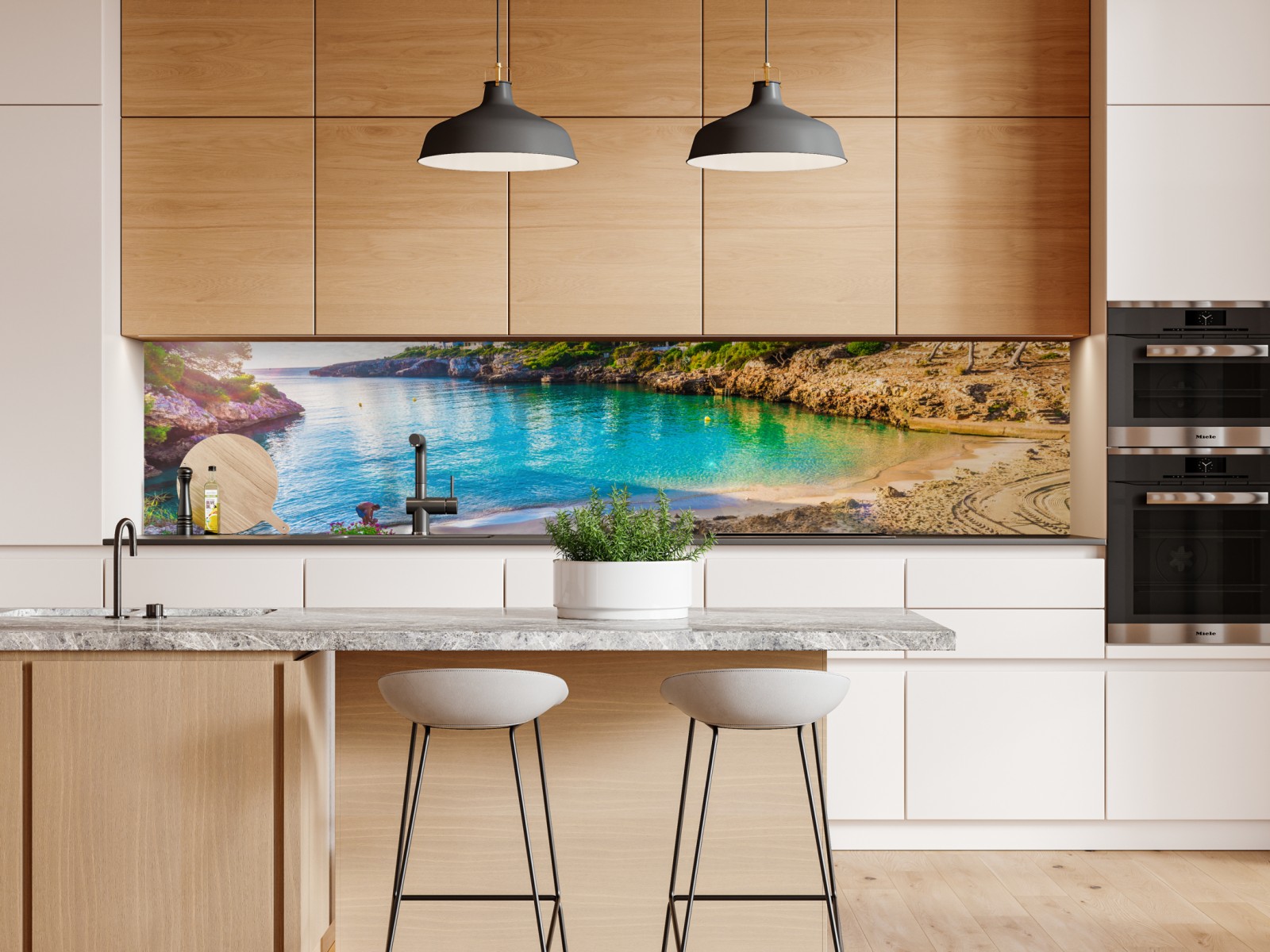 Repositionierbarer Aufkleber Sonnige Cala Esmeralda türkisbucht