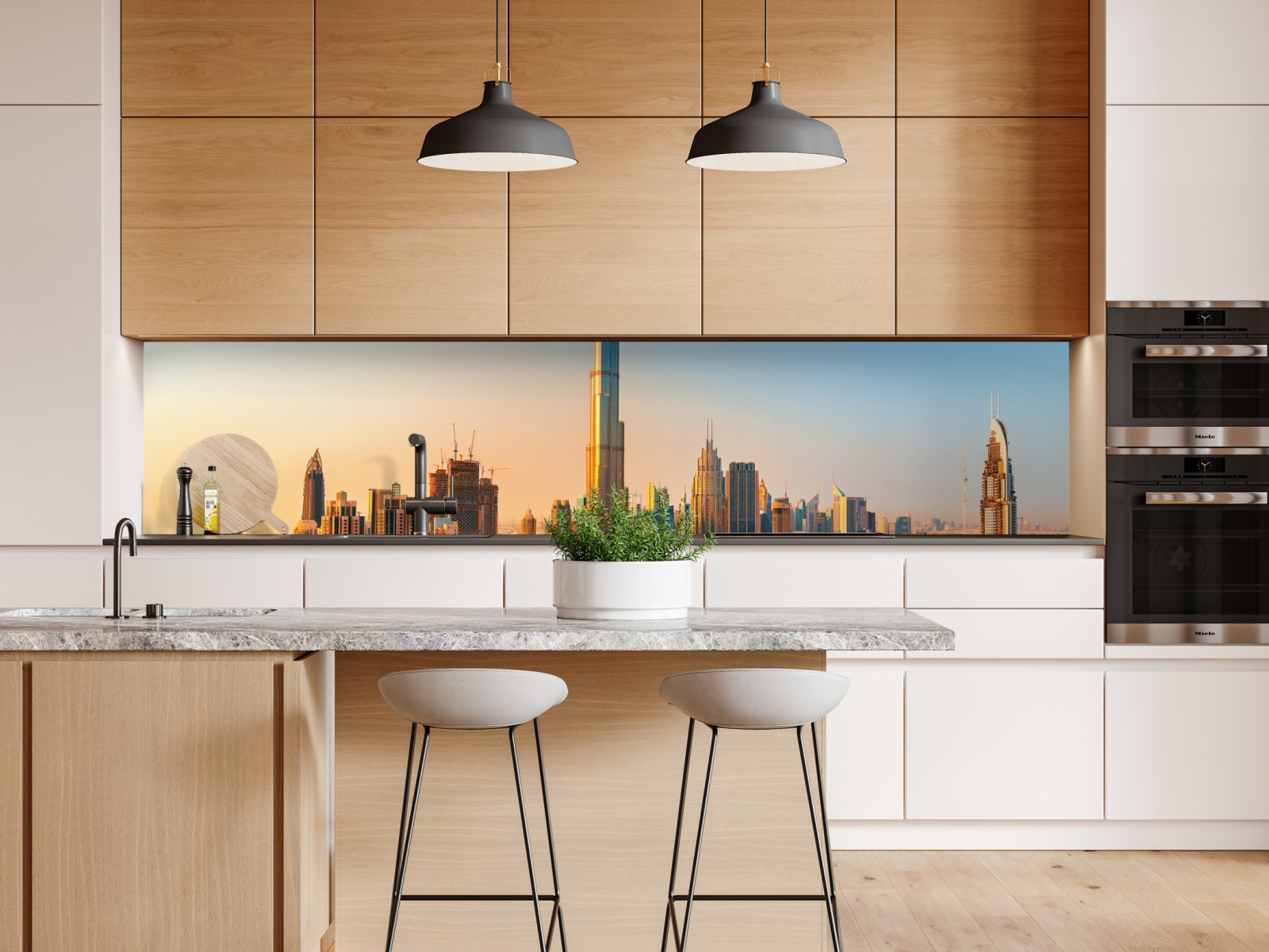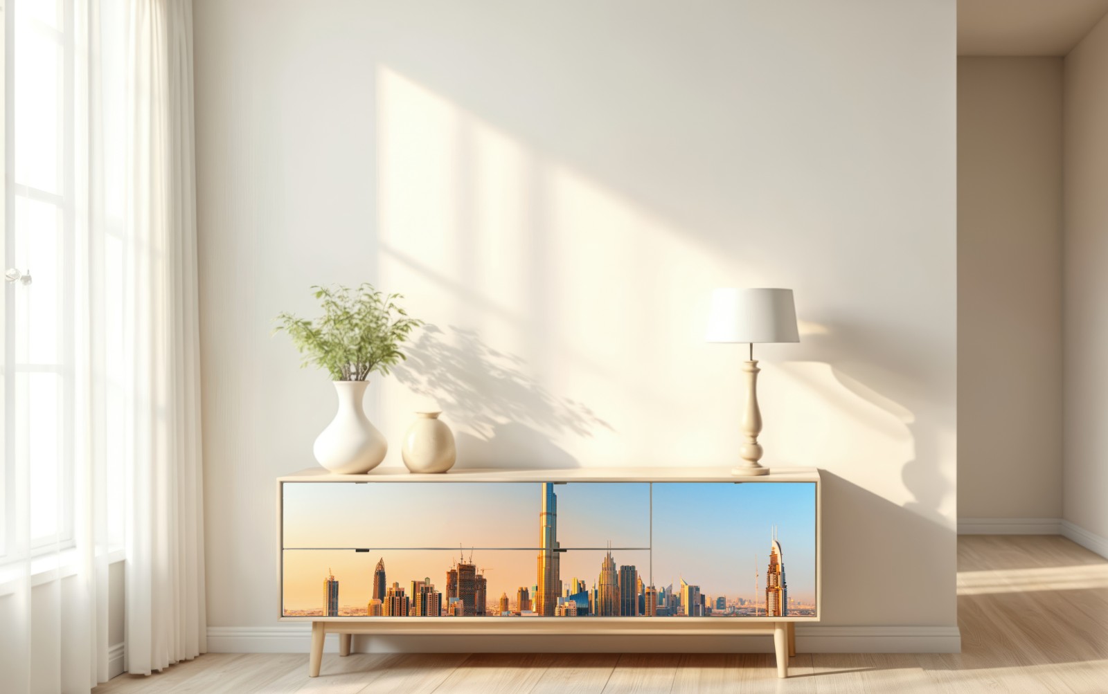 Repositionierbarer Aufkleber Dubai skyline in der goldenen stunde