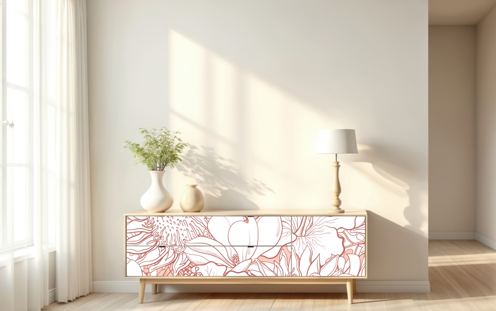 Repositionierbarer Aufkleber Zartes korallenfarbenes blumenmuster