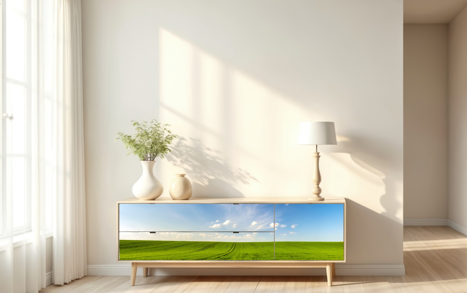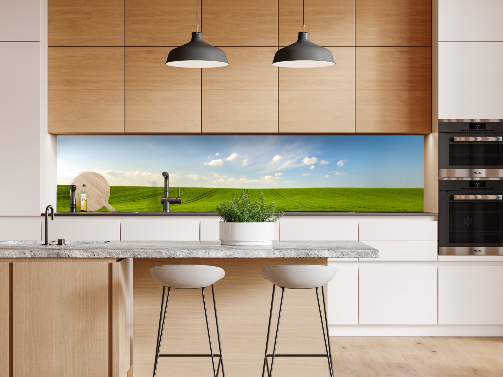 Repositionierbarer Aufkleber Frühlingsgrüne wiesenpanorama