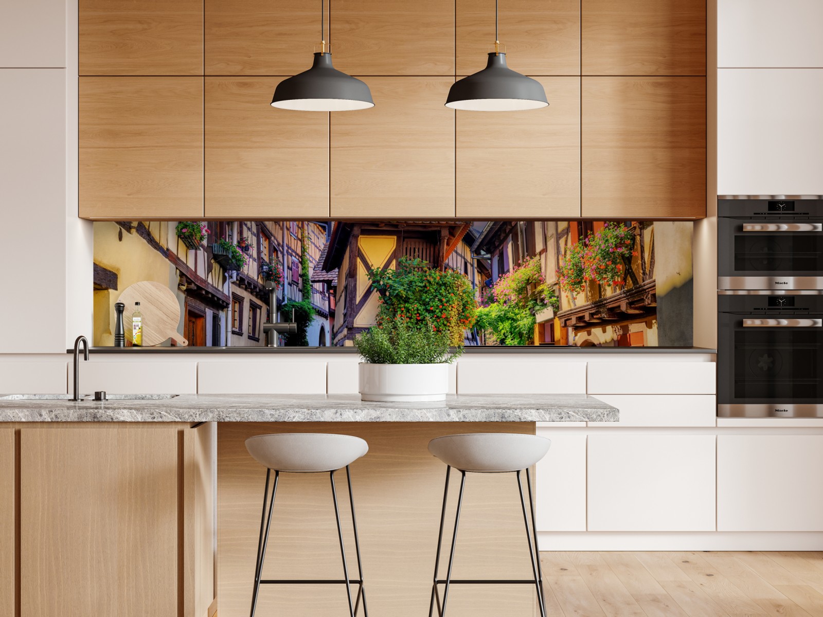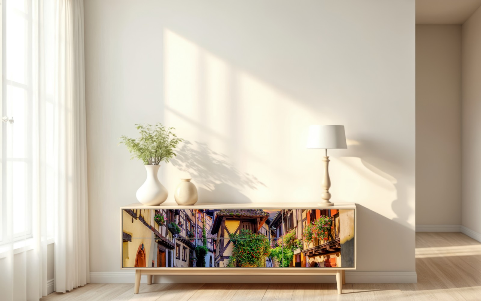 Repositionierbarer Aufkleber Malerische fachwerkstraße in Eguisheim, Elsass
