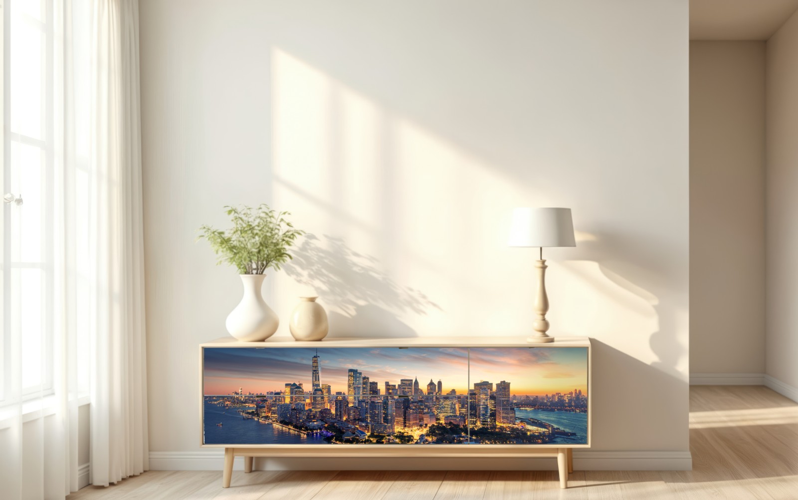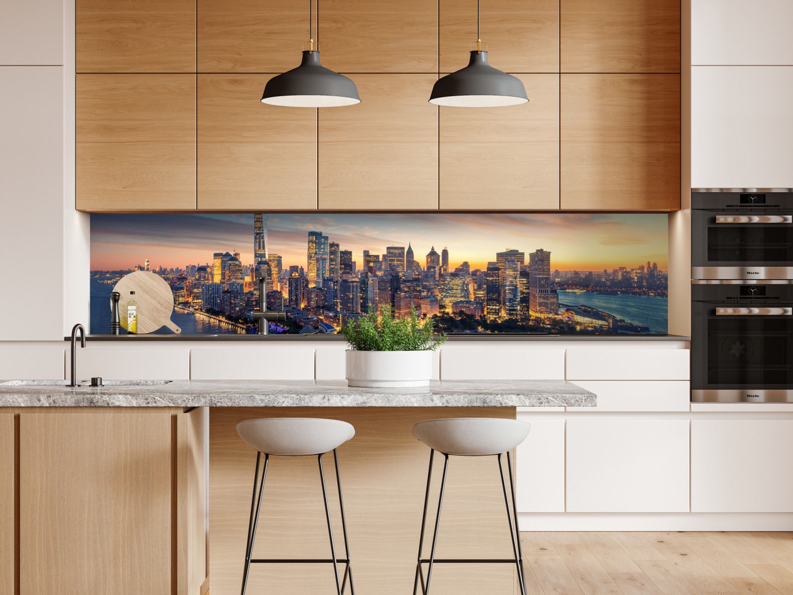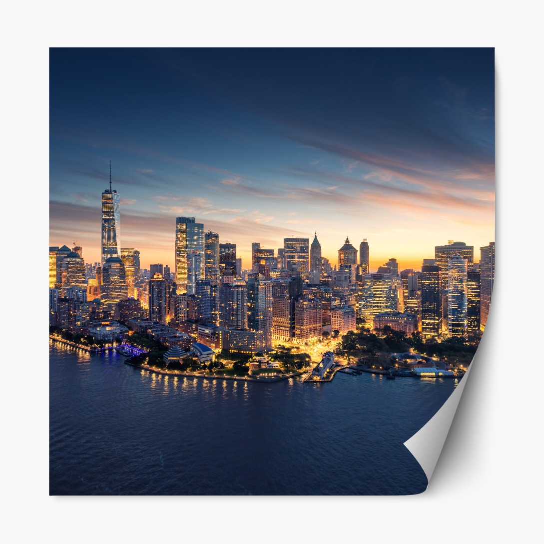 Repositionierbarer Aufkleber Manhattan panorama bei sonnenaufgang
