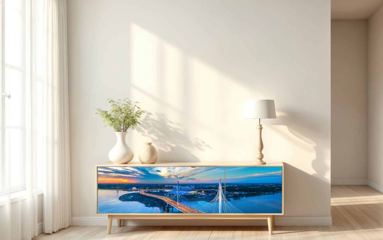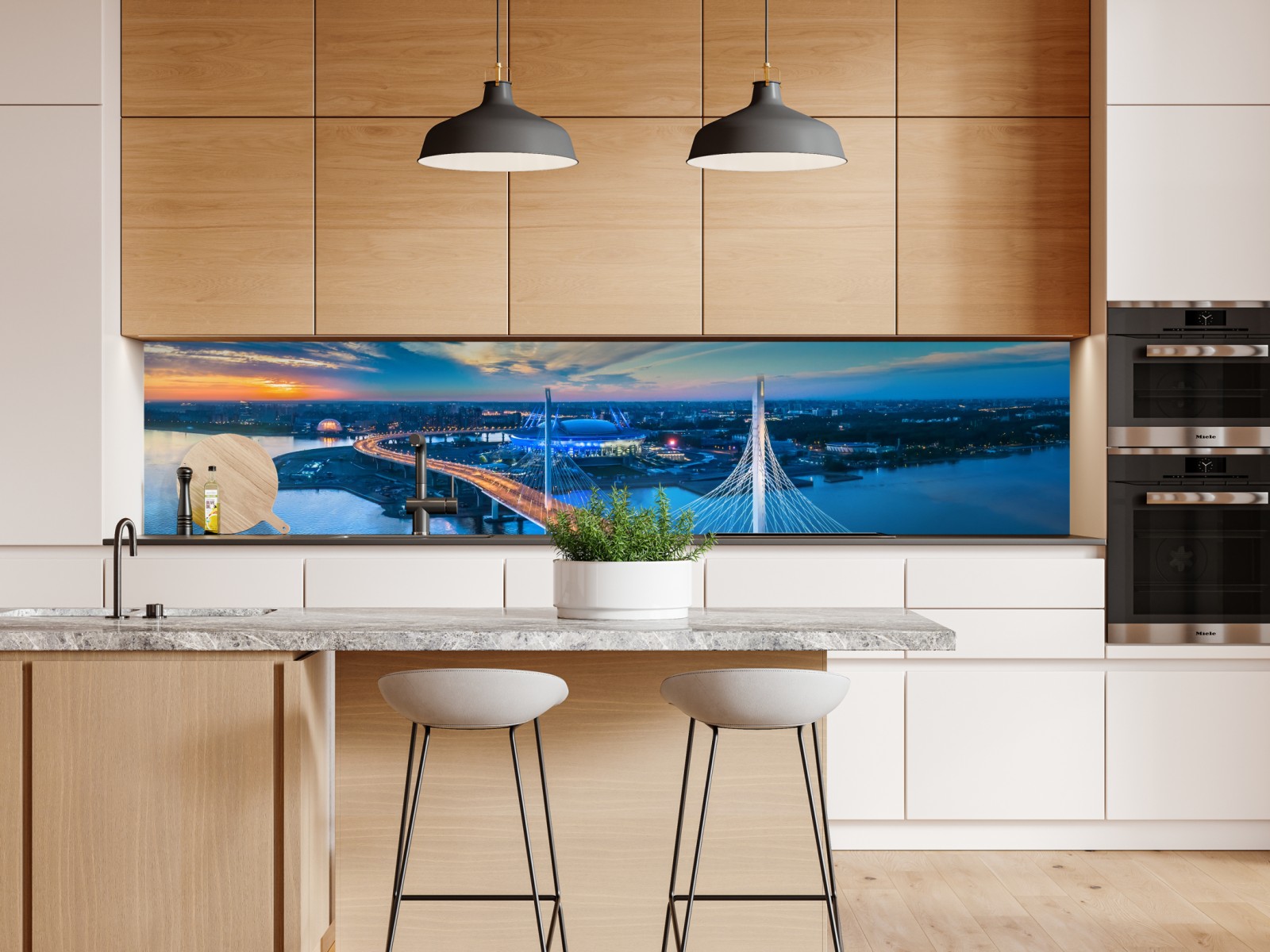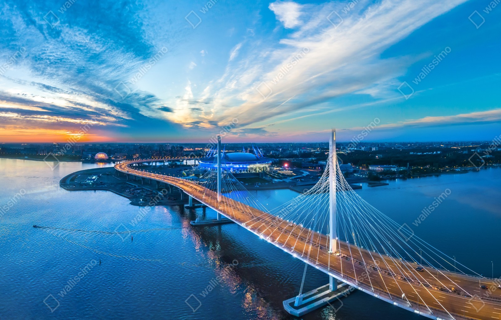 Repositionierbarer Aufkleber Sankt Petersburg brückenpanorama bei dämmerung
