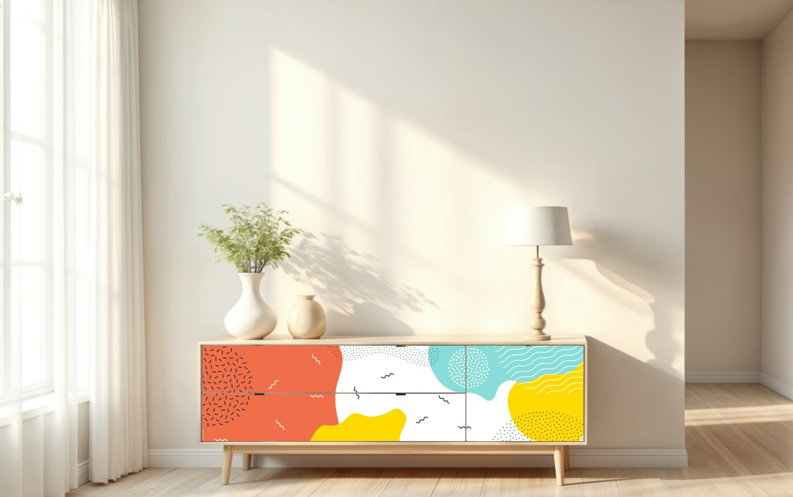 Repositionierbarer Aufkleber Verspielte abstrakte formen in lebendigen farben