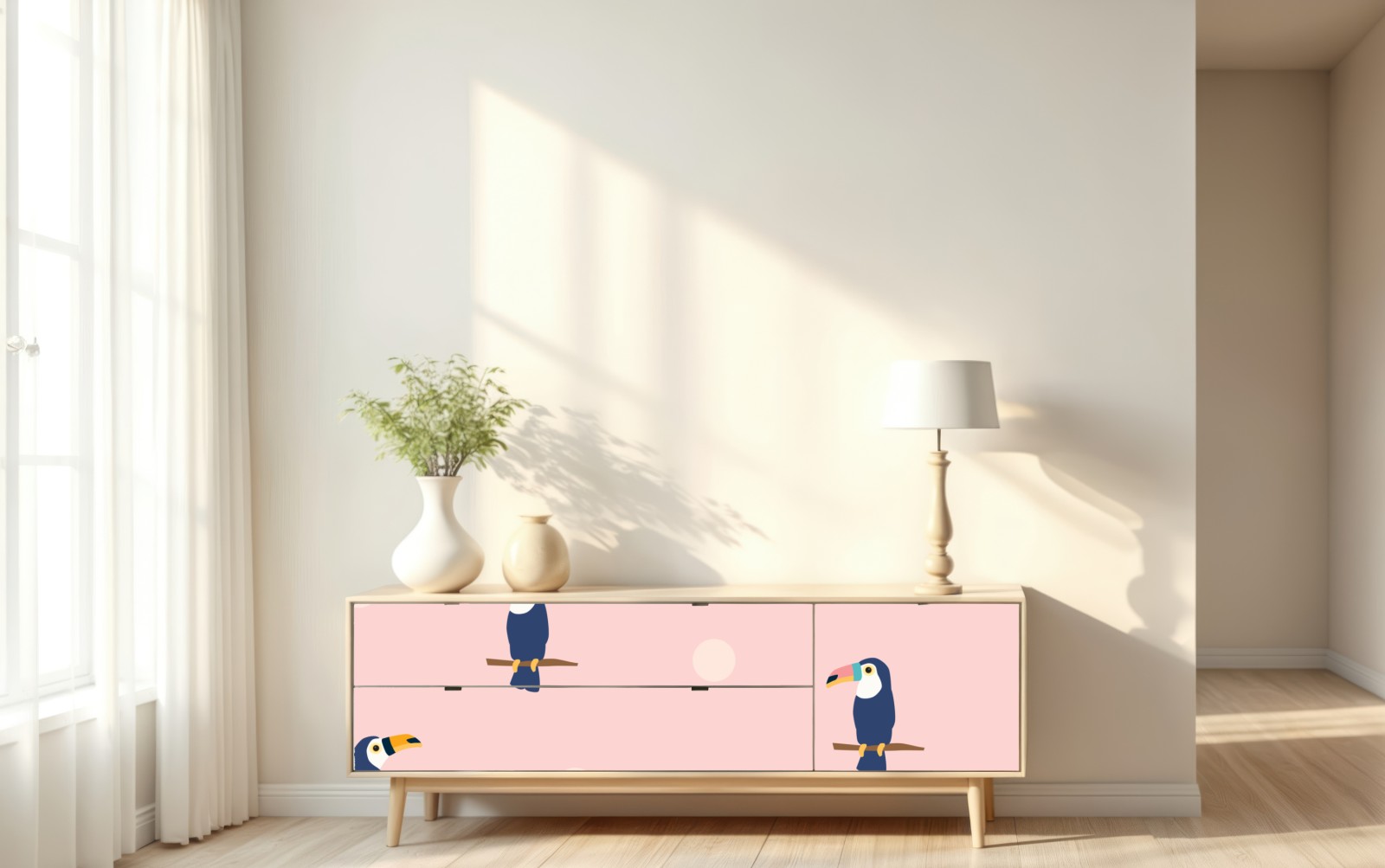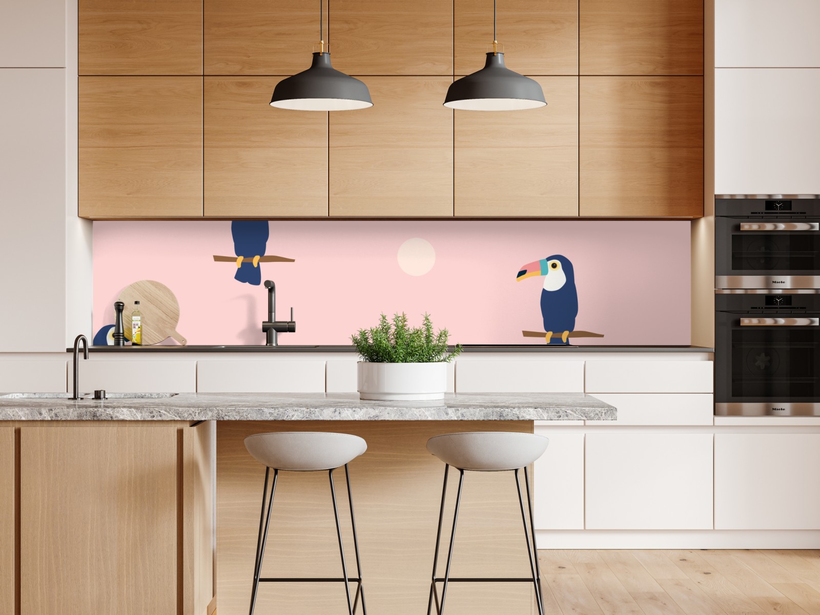 Repositionierbarer Aufkleber Verspieltes tukanmuster auf pastellrosa