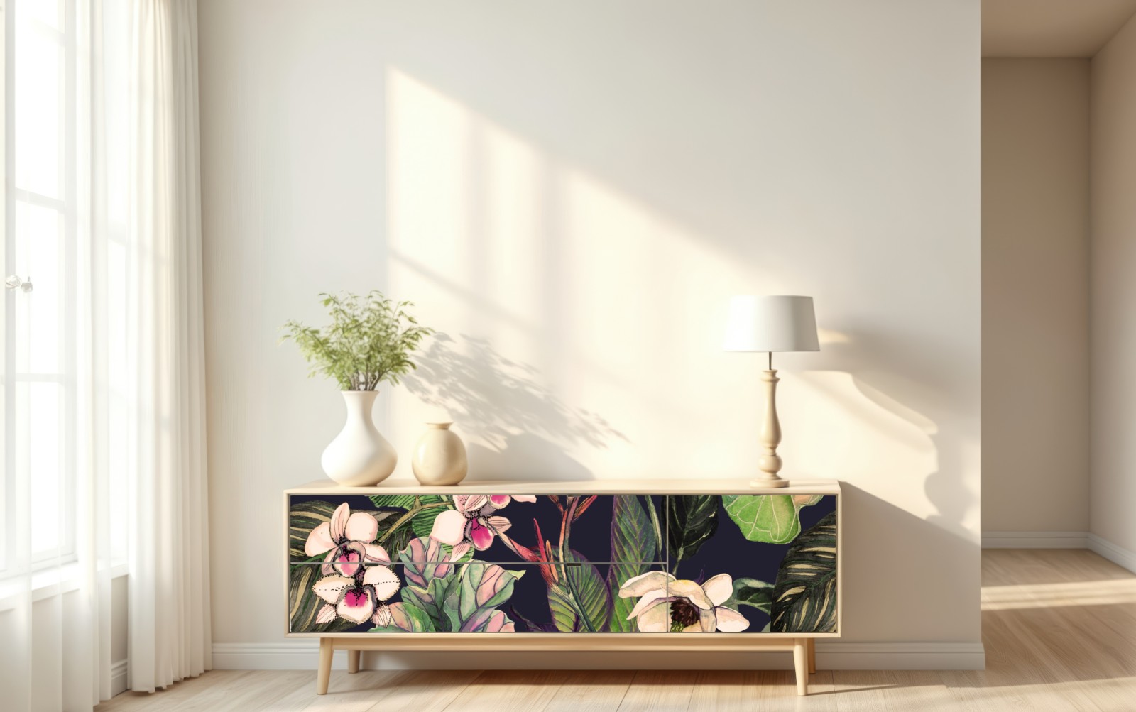 Repositionierbarer Aufkleber Tropisches aquarell botanikmuster